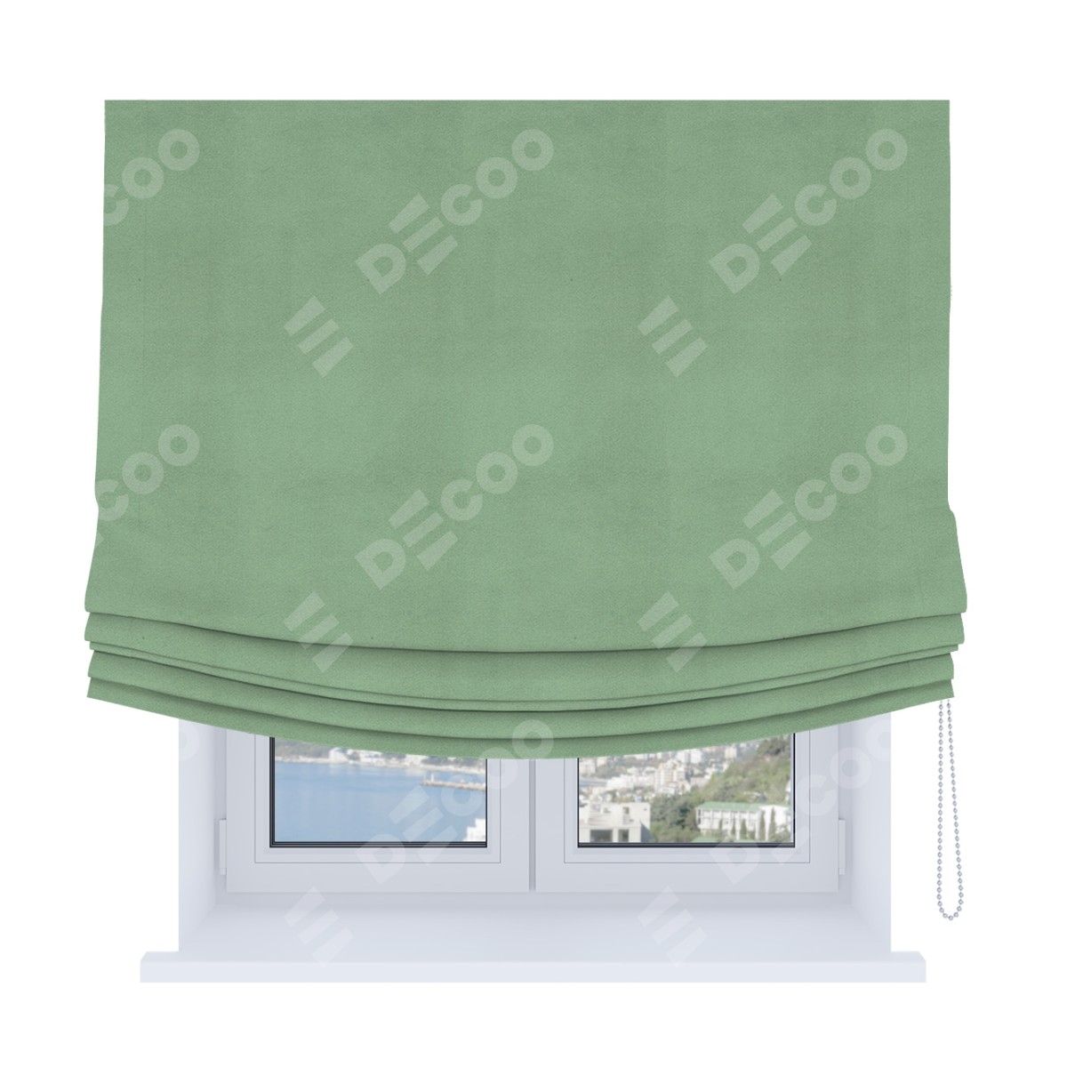 Римская штора Soft производителя «Cortin», используется для проёма, пошита из ткани бархат оливковый, артикул ткани 18746. Имеет универсальный механизм и подходит для монтажа: на потолок, на стену и в нишу. В отличие от стандартных римских штор, римская штора Soft не имеет горизонтальных вставок и нижнего отвеса. Это позволяет ткани произвольно драпироваться в свободные мягкие складки.