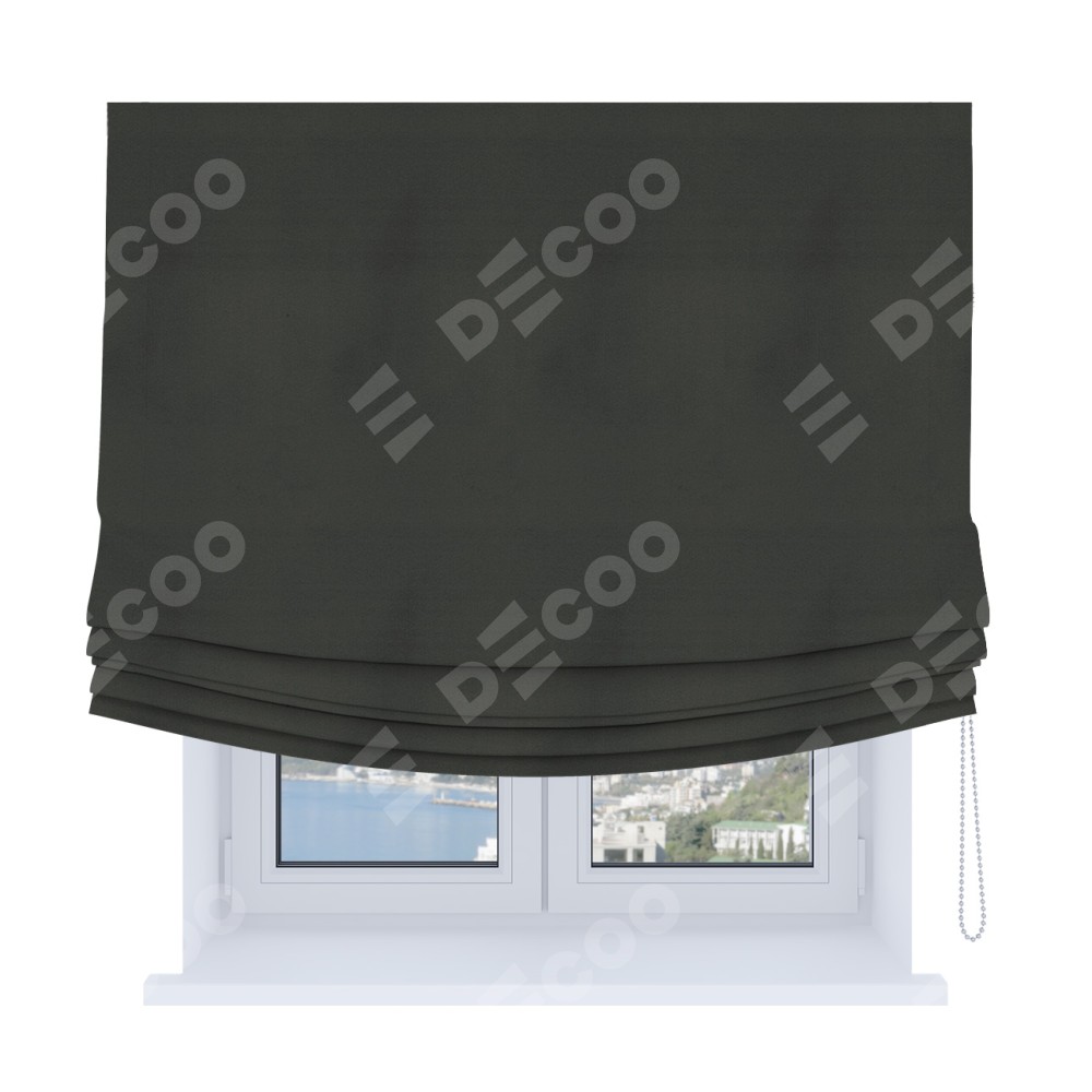 Римская штора Soft производителя «Cortin», используется для проёма, пошита из ткани бархат серый, артикул ткани 5024. Имеет универсальный механизм и подходит для монтажа: на потолок, на стену и в нишу. В отличие от стандартных римских штор, римская штора Soft не имеет горизонтальных вставок и нижнего отвеса. Это позволяет ткани произвольно драпироваться в свободные мягкие складки.
