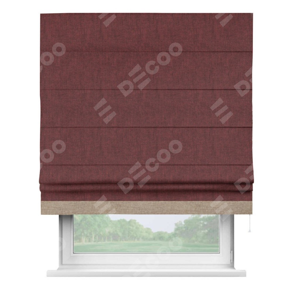 Римская штора «Кортин» с кантом Джестер, для проема, ткань лён кашемир бордовый