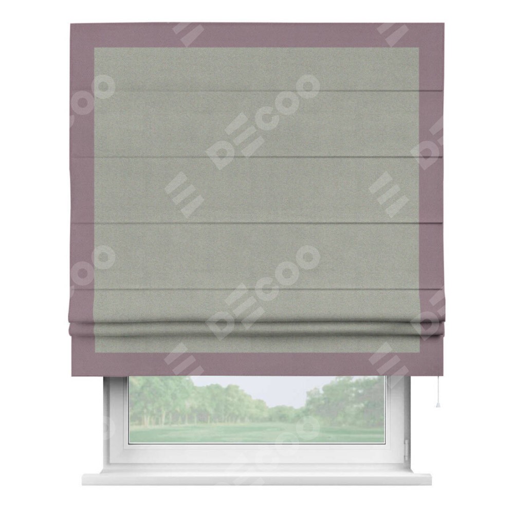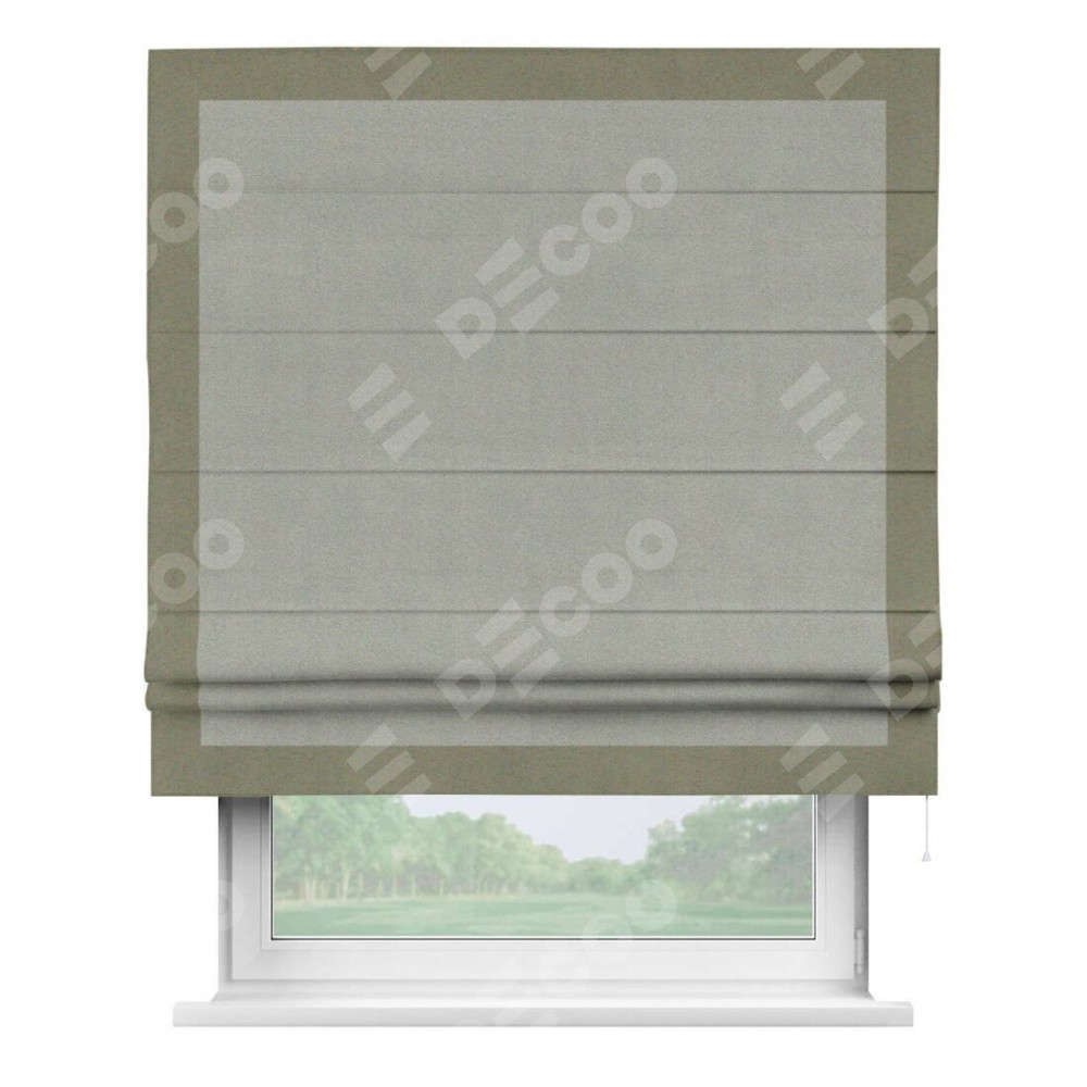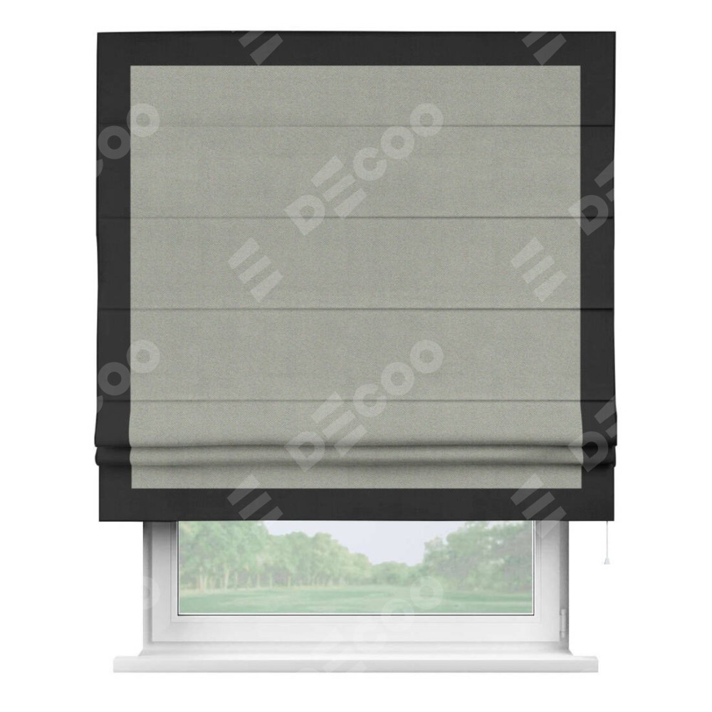 Римская штора производителя «Cortin», используется для проёма, пошита из ткани блэкаут однотонный серый, артикул ткани 88292. Отделка шторы кантом «Чесс», ткань для канта используется из блэкаута однотонного разной расцветки на выбор. Имеет универсальный механизм и подходит для монтажа: на потолок, на стену и в нишу.