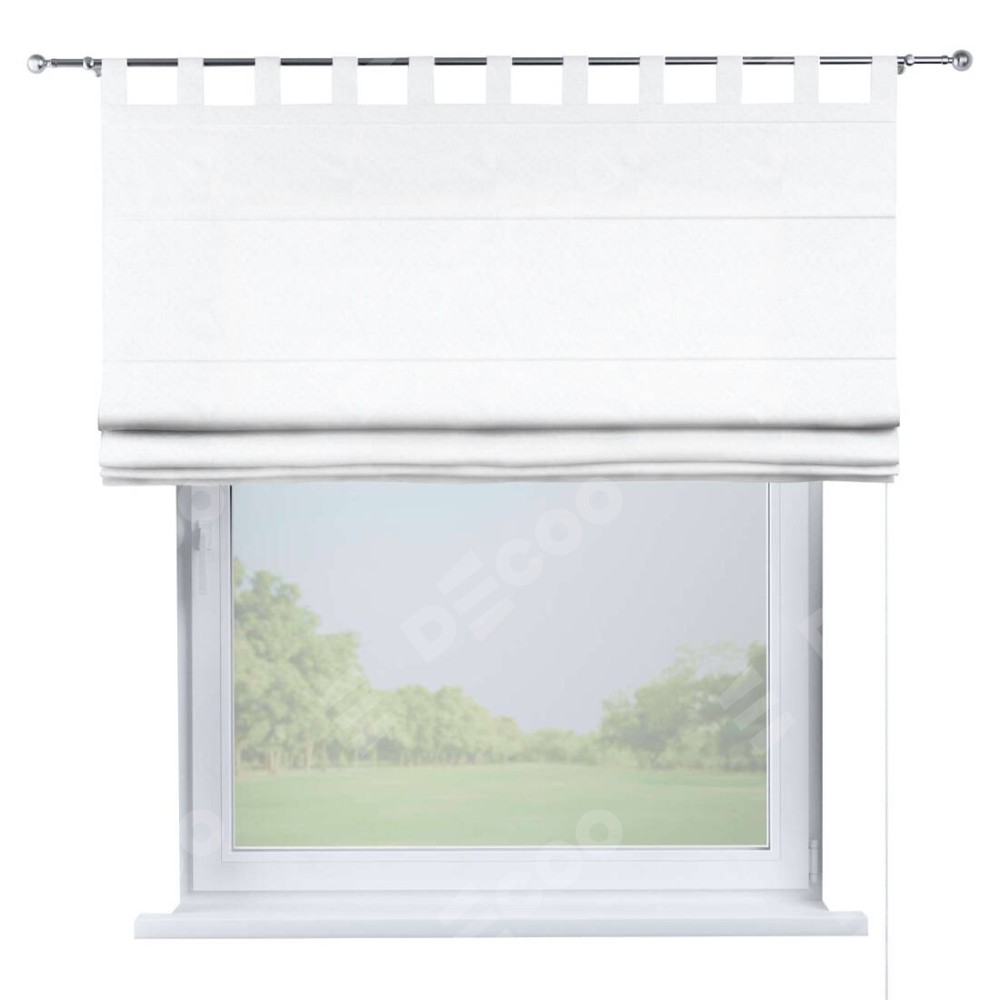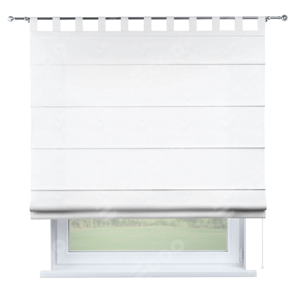 Римская штора производителя «Cortin», используется для проёма, пошита из ткани вельвет белоснежный, артикул ткани 19192. Данная модель пошита на петлях, комплектуется на выбор круглым карнизом и подходит для монтажа на стену. Римская штора на петлях имеет простую систему регулировки высоты, отличительным преимуществом данной модели является простой способ монтажа. Достаточно повесить ее на трубу и штора готова!