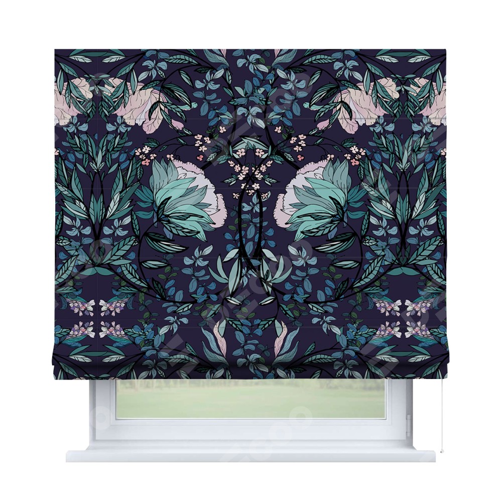 Римская штора «Кортин» для проема «Цветочный индиго»