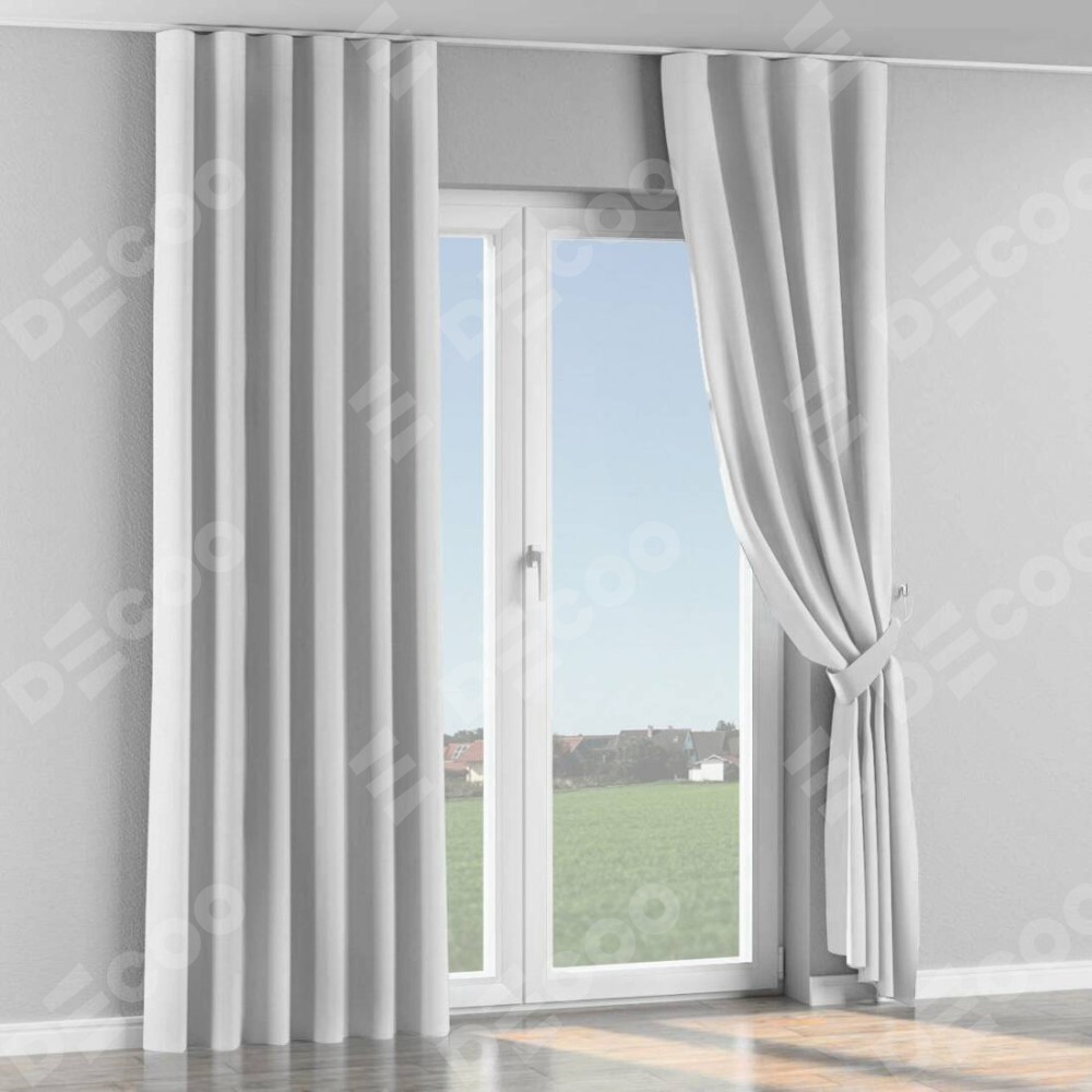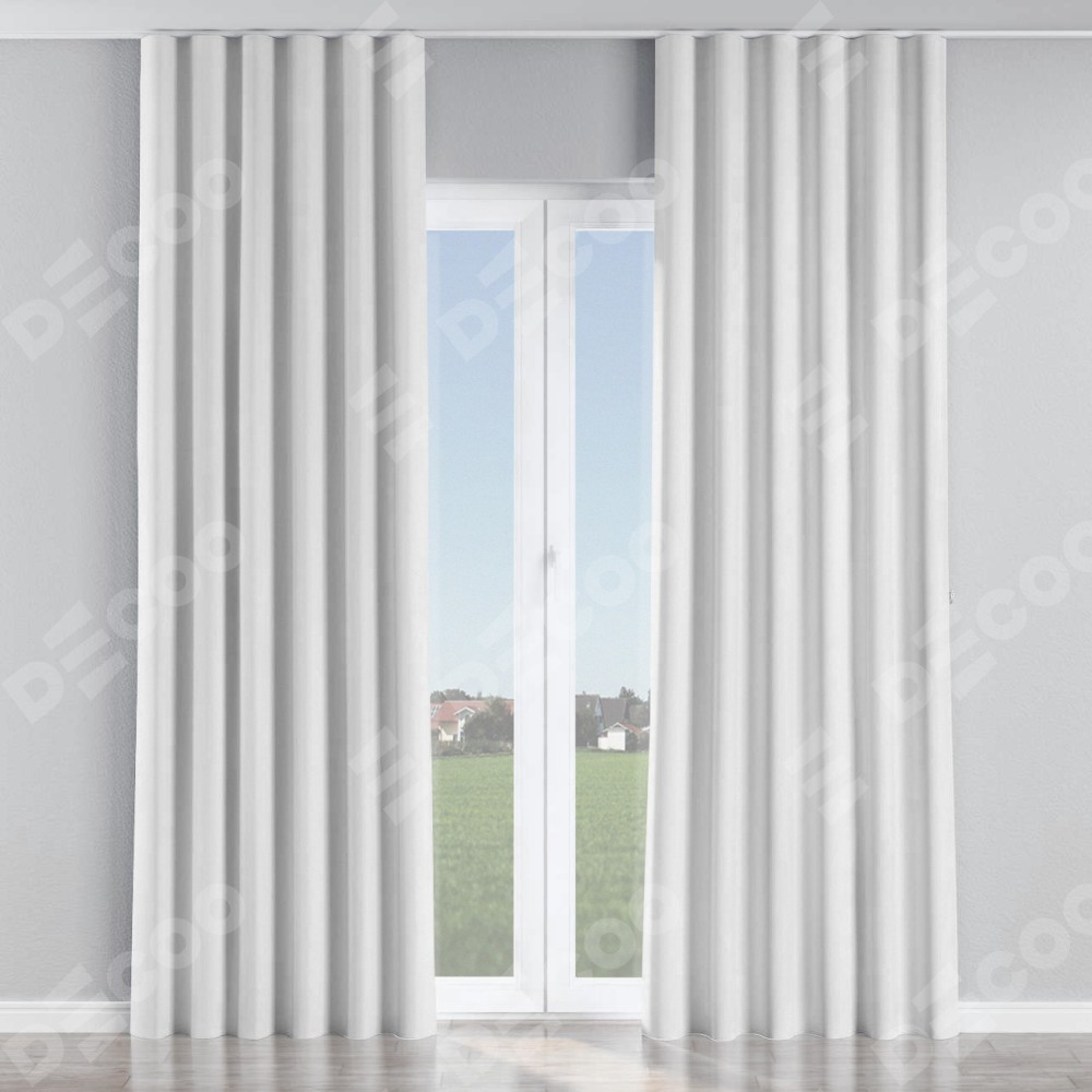 Комплект прямых штор, от производителя «Cortin», пошиты из ткани лён белоснежный, артикул ткани 7438. С изнаночной стороны в верхней части штор пристрачивается шторная лента с декоративными складками «Волна». Для создания элегантных складок прямые шторы шьются по стандарту с коэффициентом 1:2 (на 100 см. ширины проёма 200 см. ширины ткани).