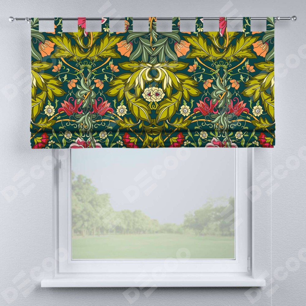 Римская штора производителя «Cortin», используется для проёма, пошита из ткани блэкаут с нанесением сублимационной печати «Цветок морриса». Данная модель пошита на петлях, комплектуется на выбор круглым карнизом и подходит для монтажа на стену. Римская штора на петлях имеет простую систему регулировки высоты, отличительным преимуществом данной модели является простой способ монтажа. Достаточно повесить ее на трубу и штора готова!