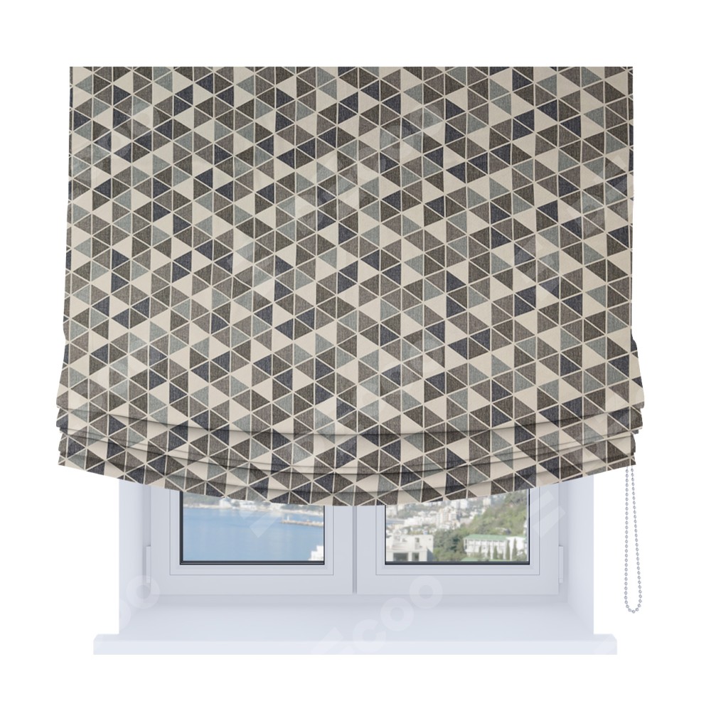 Римская штора Soft с мягкими складками, ткань димаут «Треугольники синие»