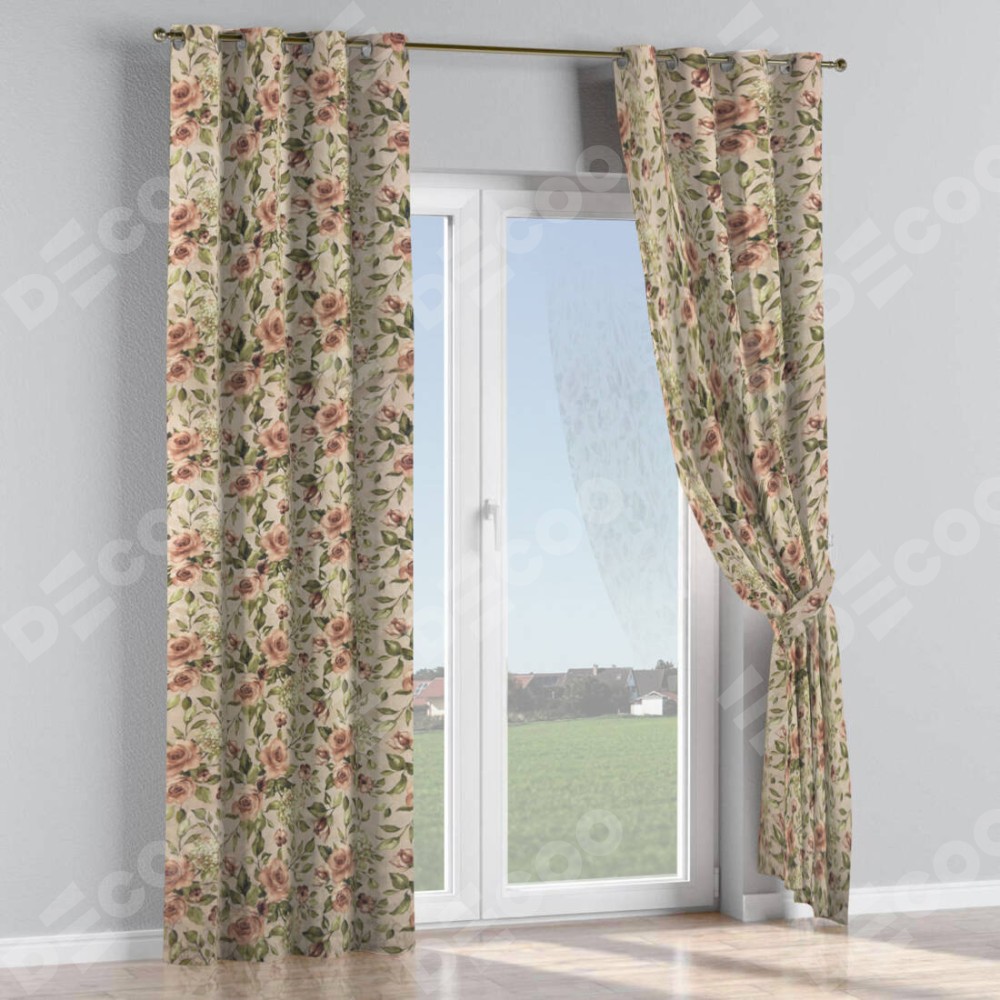 Комплект штор на люверсах ткань «Розы бежевые» ширина от 140 см