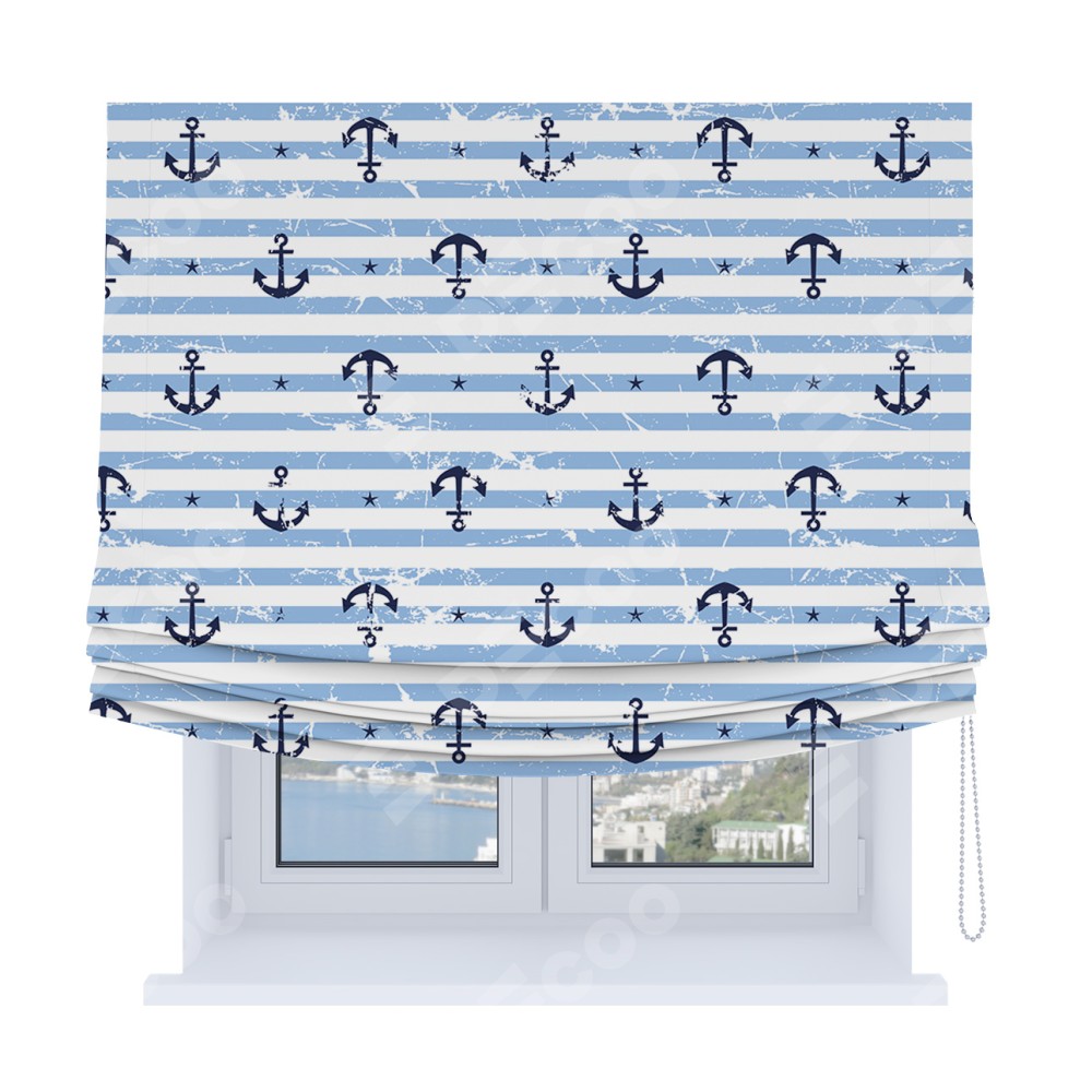 Римская штора Soft с мягкими складками, «Полоски и якори»