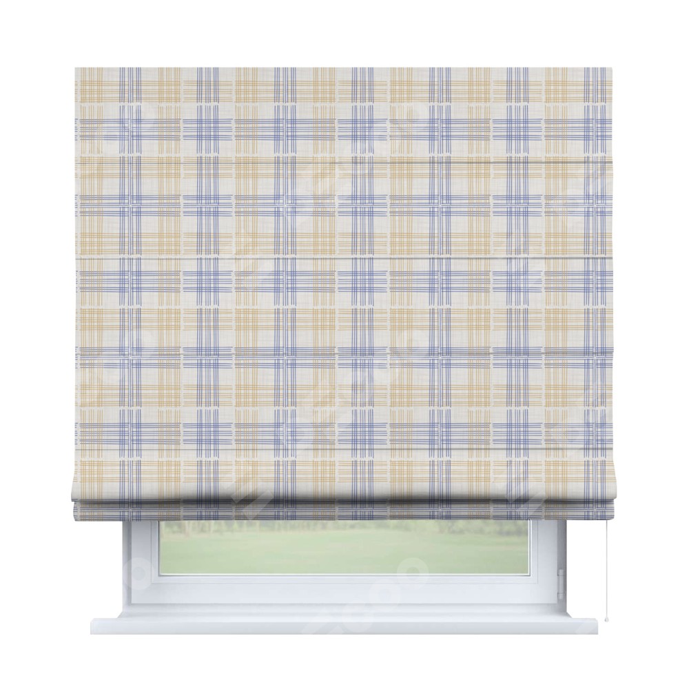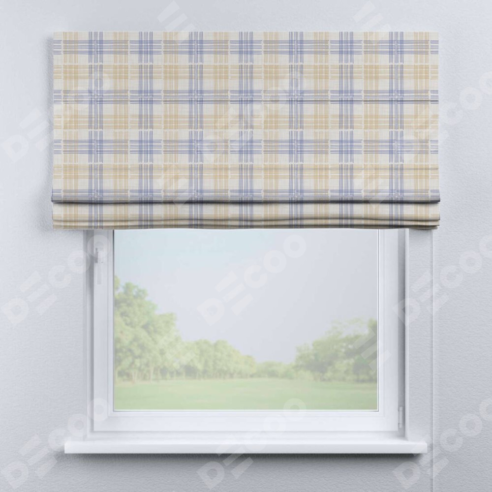 Римская штора производителя «Cortin», используется для проёма, пошита из ткани блэкаут с нанесением сублимационной печати «Клетки кантри». Имеет универсальный механизм и подходит для монтажа: на потолок, на стену и в нишу.