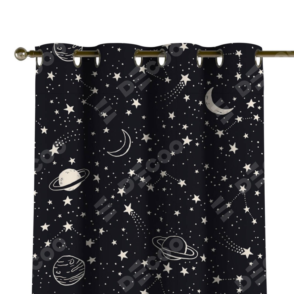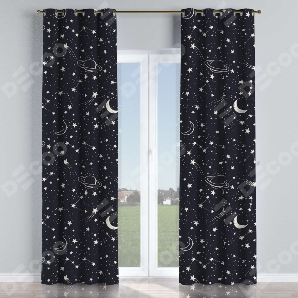 Комплект прямых штор, от производителя «Cortin», пошиты из ткани блэкаут с нанесением сублимационной печати «Глубокий космос». Данная модель пошита на люверсах, комплектуется на выбор круглым карнизом и подходит для монтажа на стену или потолок. Прямые шторы на люверсах шьются по стандарту с коэффициентом 1/2 (на 100 см. ширины проёма 200 см. ширины ткани), отличительным преимуществом данной модели является простой способ монтажа. Достаточно повесить ее на трубу и штора готова!
