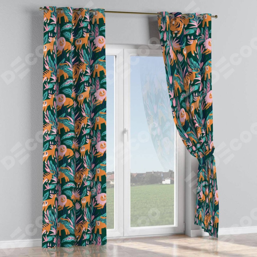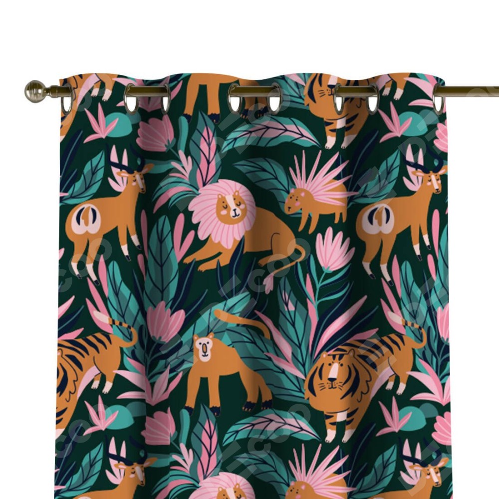 Комплект прямых штор, от производителя «Cortin», пошиты из ткани блэкаут с нанесением сублимационной печати «Дикие животные». Данная модель пошита на люверсах, комплектуется на выбор круглым карнизом и подходит для монтажа на стену или потолок. Прямые шторы на люверсах шьются по стандарту с коэффициентом 1/2 (на 100 см. ширины проёма 200 см. ширины ткани), отличительным преимуществом данной модели является простой способ монтажа. Достаточно повесить ее на трубу и штора готова!