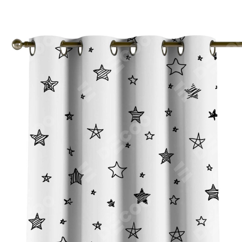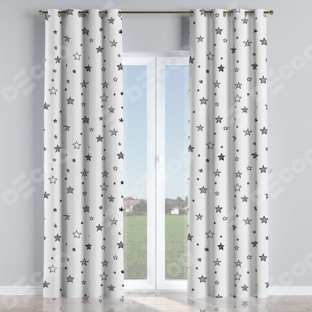 Комплект прямых штор, от производителя «Cortin», пошиты из ткани блэкаут с нанесением сублимационной печати «Звёзды». Данная модель пошита на люверсах, комплектуется на выбор круглым карнизом и подходит для монтажа на стену или потолок. Прямые шторы на люверсах шьются по стандарту с коэффициентом 1/2 (на 100 см. ширины проёма 200 см. ширины ткани), отличительным преимуществом данной модели является простой способ монтажа. Достаточно повесить ее на трубу и штора готова!