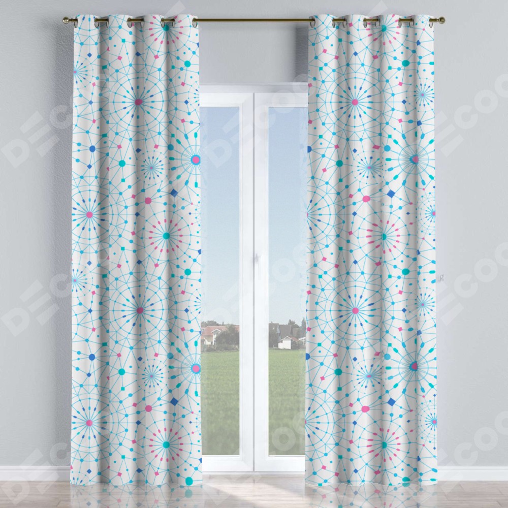 Комплект прямых штор, от производителя «Cortin», пошиты из ткани блэкаут с нанесением сублимационной печати «Круги и линии». Данная модель пошита на люверсах, комплектуется на выбор круглым карнизом и подходит для монтажа на стену или потолок. Прямые шторы на люверсах шьются по стандарту с коэффициентом 1/2 (на 100 см. ширины проёма 200 см. ширины ткани), отличительным преимуществом данной модели является простой способ монтажа. Достаточно повесить ее на трубу и штора готова!