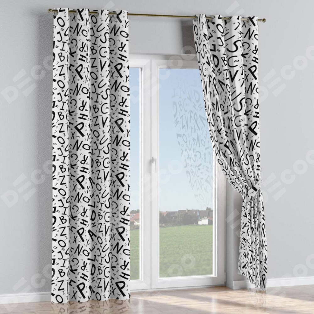 Комплект прямых штор, от производителя «Cortin», пошиты из ткани блэкаут с нанесением сублимационной печати «Литеры на белом». Данная модель пошита на люверсах, комплектуется на выбор круглым карнизом и подходит для монтажа на стену или потолок. Прямые шторы на люверсах шьются по стандарту с коэффициентом 1/2 (на 100 см. ширины проёма 200 см. ширины ткани), отличительным преимуществом данной модели является простой способ монтажа. Достаточно повесить ее на трубу и штора готова!