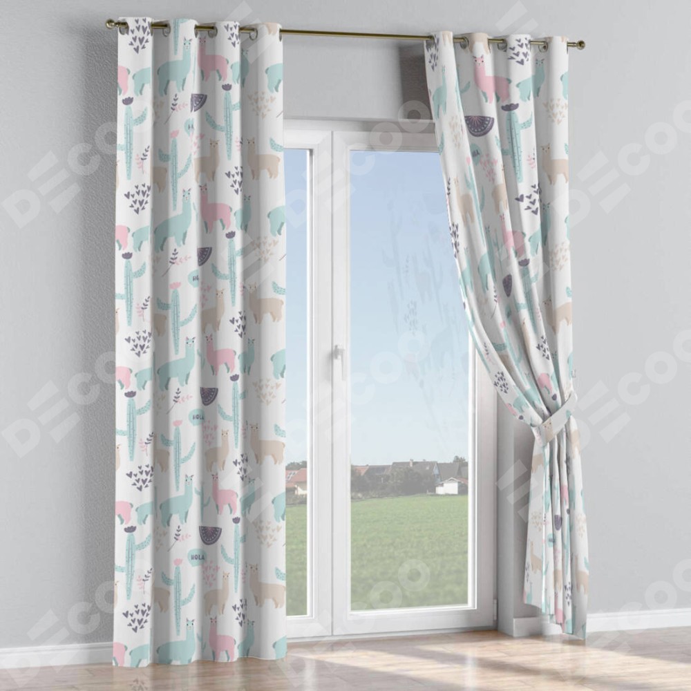 Комплект прямых штор, от производителя «Cortin», пошиты из ткани блэкаут с нанесением сублимационной печати «Милый лама». Данная модель пошита на люверсах, комплектуется на выбор круглым карнизом и подходит для монтажа на стену или потолок. Прямые шторы на люверсах шьются по стандарту с коэффициентом 1/2 (на 100 см. ширины проёма 200 см. ширины ткани), отличительным преимуществом данной модели является простой способ монтажа. Достаточно повесить ее на трубу и штора готова!