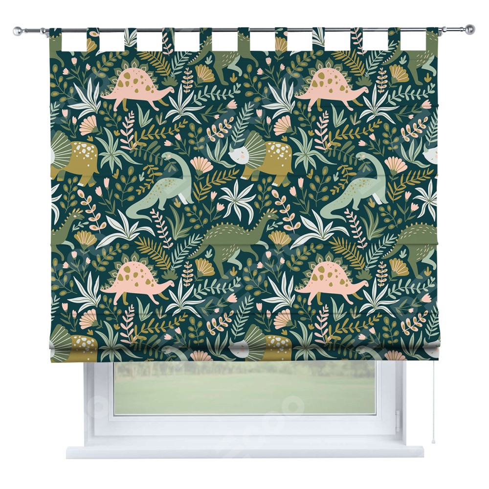 Римская штора производителя «Cortin», используется для проёма, пошита из ткани блэкаут с нанесением сублимационной печати «Удивительный дино». Данная модель пошита на петлях, комплектуется на выбор круглым карнизом и подходит для монтажа на стену. Римская штора на петлях имеет простую систему регулировки высоты, отличительным преимуществом данной модели является простой способ монтажа. Достаточно повесить ее на трубу и штора готова!