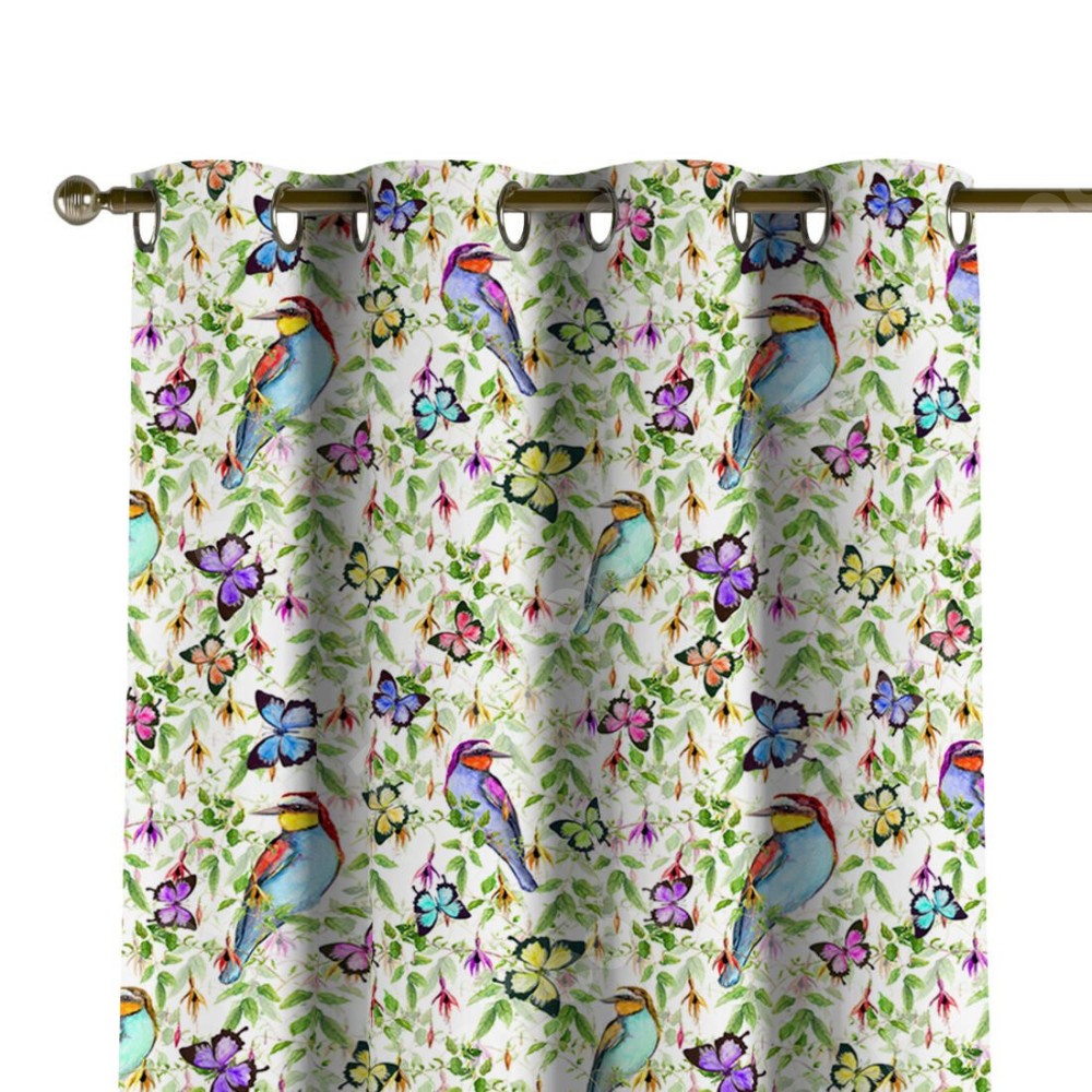 Комплект прямых штор, от производителя «Cortin», пошиты из ткани блэкаут с нанесением сублимационной печати «Тропические птицы». Данная модель пошита на люверсах, комплектуется на выбор круглым карнизом и подходит для монтажа на стену или потолок. Прямые шторы на люверсах шьются по стандарту с коэффициентом 1/2 (на 100 см. ширины проёма 200 см. ширины ткани), отличительным преимуществом данной модели является простой способ монтажа. Достаточно повесить ее на трубу и штора готова!