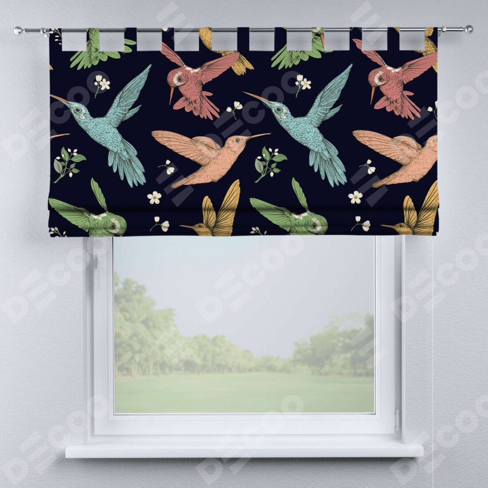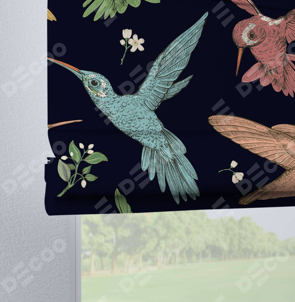 Римская штора «Кортин» на петлях «Птицы и цветы»