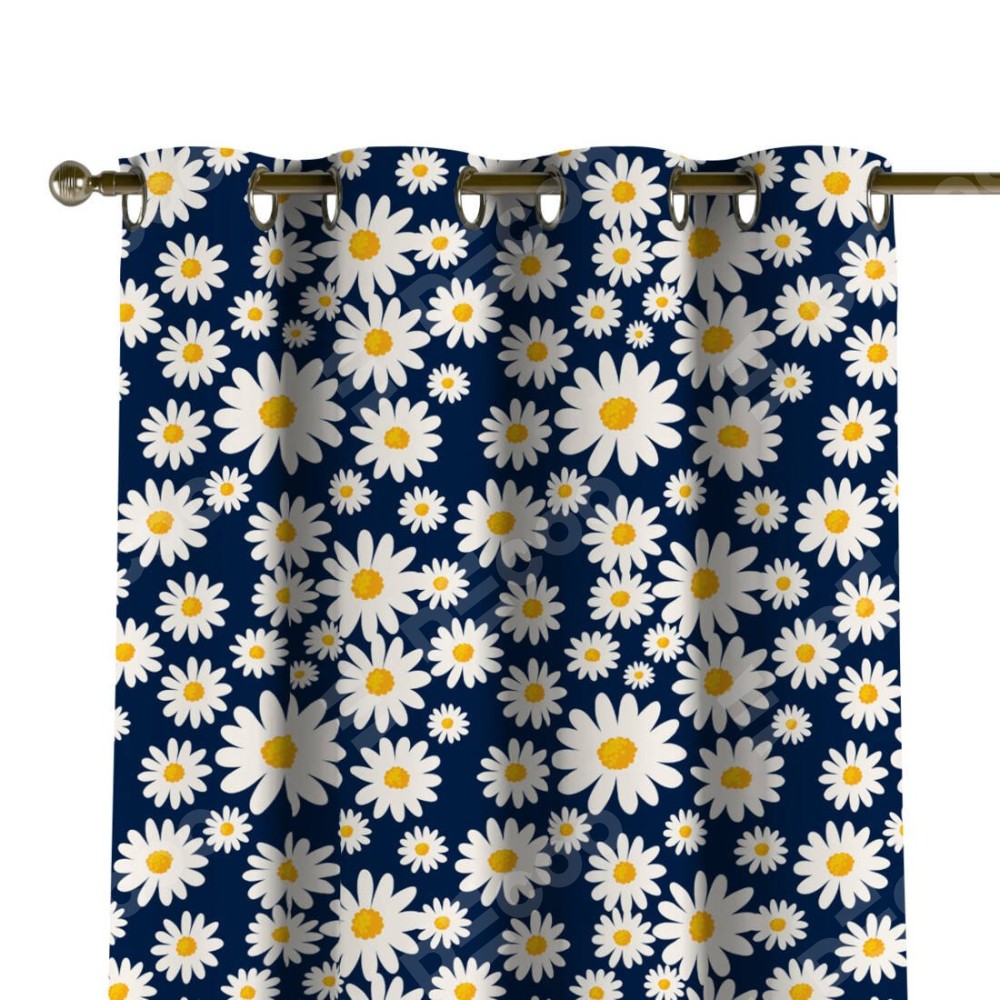 Комплект прямых штор, от производителя «Cortin», пошиты из ткани блэкаут с нанесением сублимационной печати «Яркие ромашки». Данная модель пошита на люверсах, комплектуется на выбор круглым карнизом и подходит для монтажа на стену или потолок. Прямые шторы на люверсах шьются по стандарту с коэффициентом 1/2 (на 100 см. ширины проёма 200 см. ширины ткани), отличительным преимуществом данной модели является простой способ монтажа. Достаточно повесить ее на трубу и штора готова!