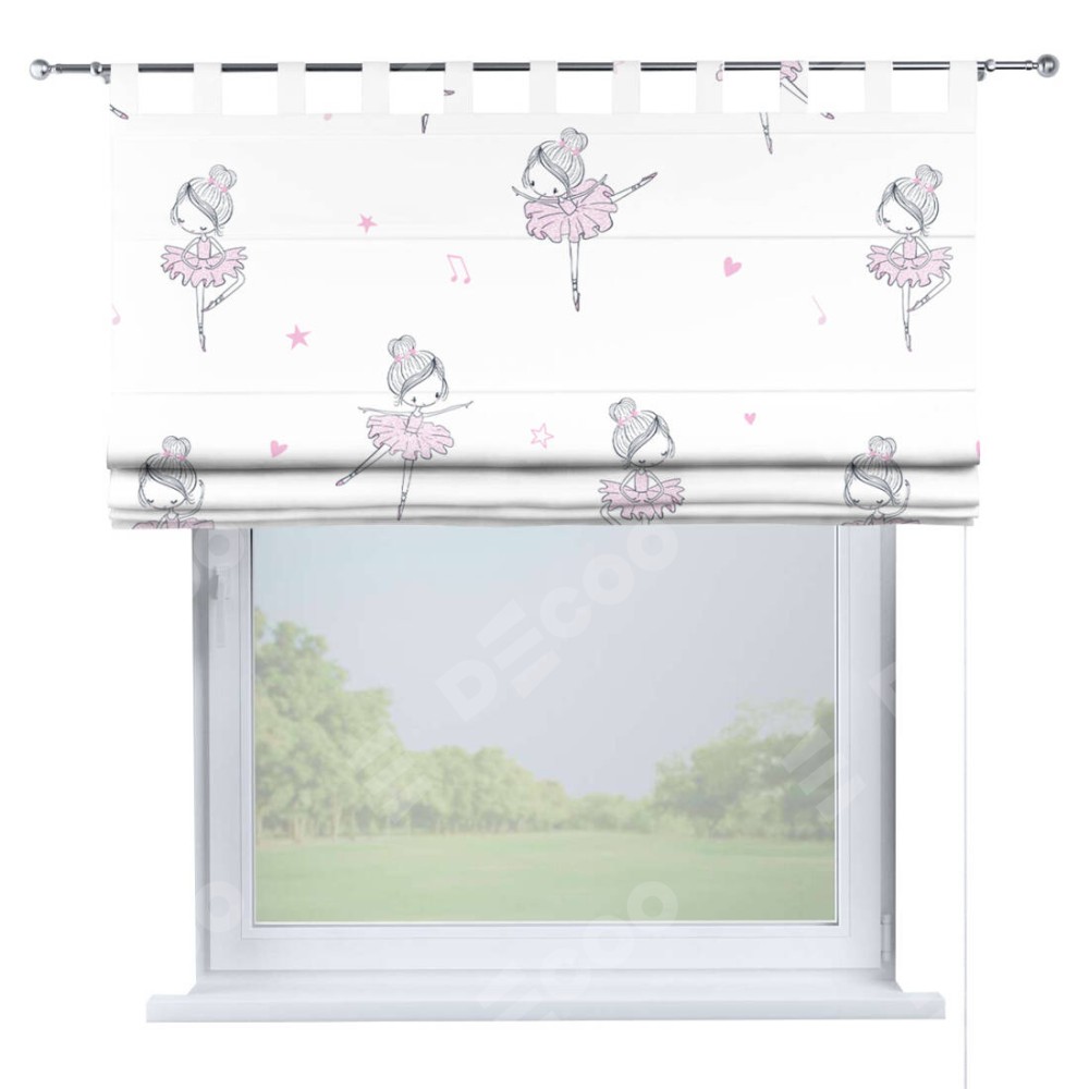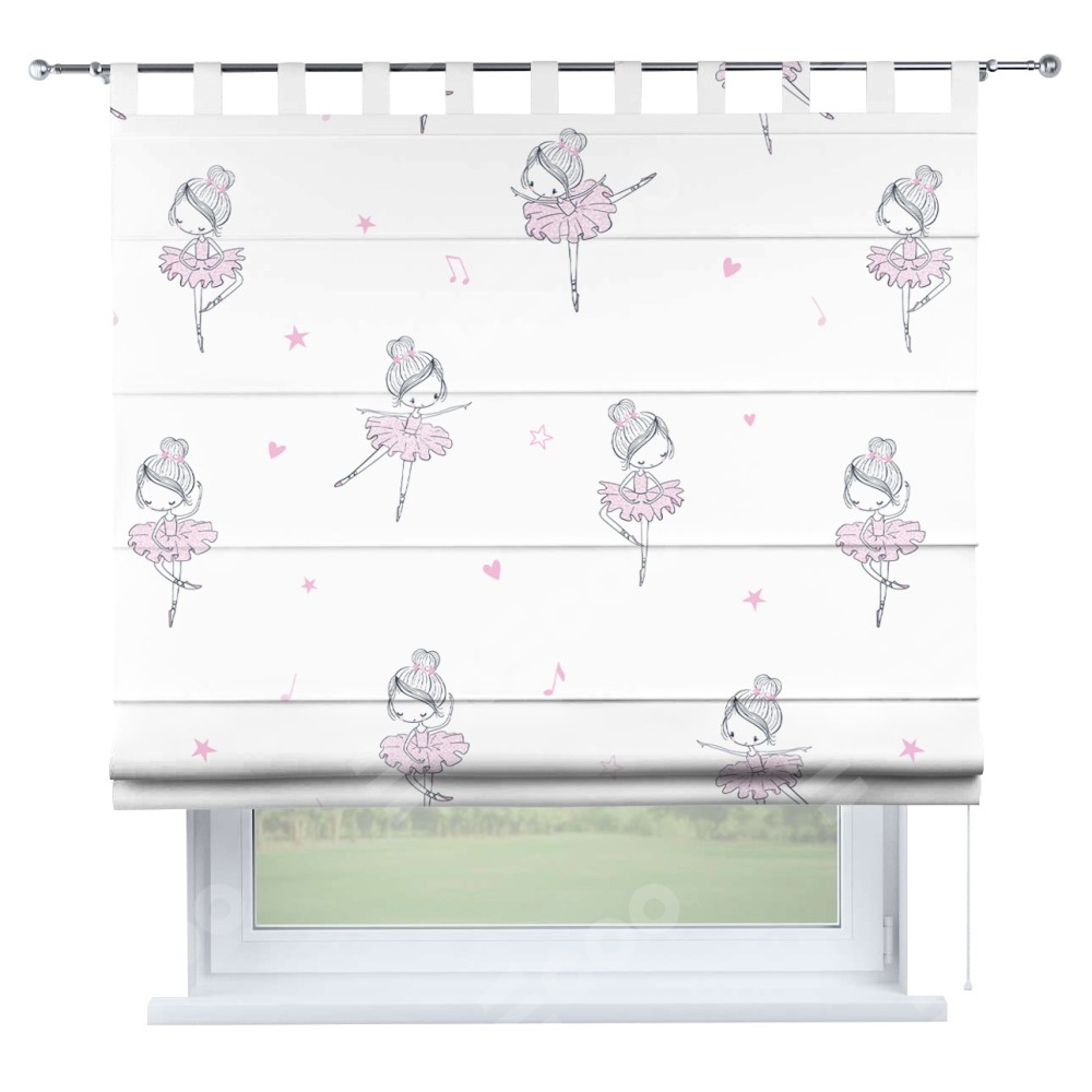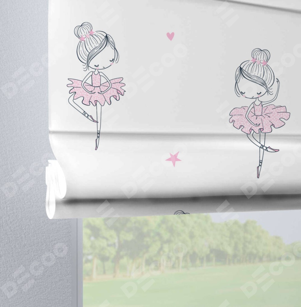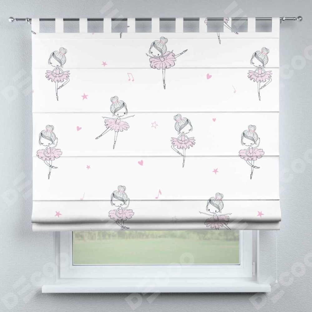 Римская штора производителя «Cortin», используется для проёма, пошита из ткани блэкаут с нанесением сублимационной печати «Маленькая балерина». Данная модель пошита на петлях, комплектуется на выбор круглым карнизом и подходит для монтажа на стену. Римская штора на петлях имеет простую систему регулировки высоты, отличительным преимуществом данной модели является простой способ монтажа. Достаточно повесить ее на трубу и штора готова!