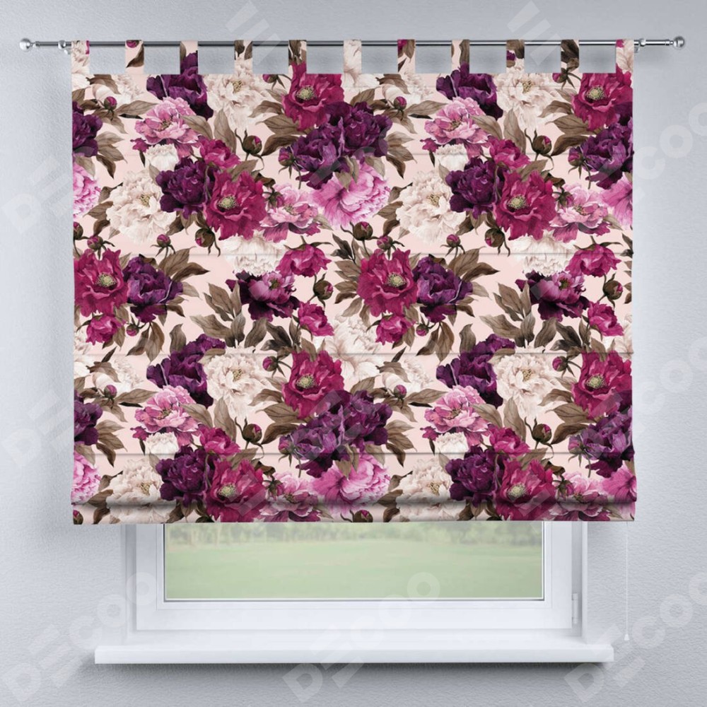 Римская штора производителя «Cortin», используется для проёма, пошита из ткани блэкаут с нанесением сублимационной печати «Великолепные пионы». Данная модель пошита на петлях, комплектуется на выбор круглым карнизом и подходит для монтажа на стену. Римская штора на петлях имеет простую систему регулировки высоты, отличительным преимуществом данной модели является простой способ монтажа. Достаточно повесить ее на трубу и штора готова!