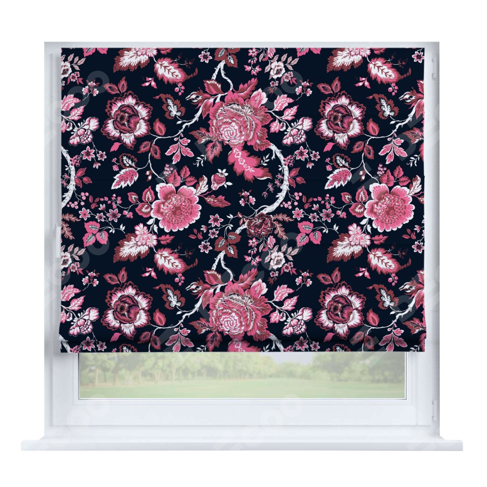 Римская штора производителя «Cortin», устанавливается на створку окна, пошита из ткани блэкаут с нанесением сублимационной печати «Бал цветов». Штора шьётся по индивидуальным размерам, для данного типа римской шторы возможная ширина от 35 до 150 см., высота до 250 см.