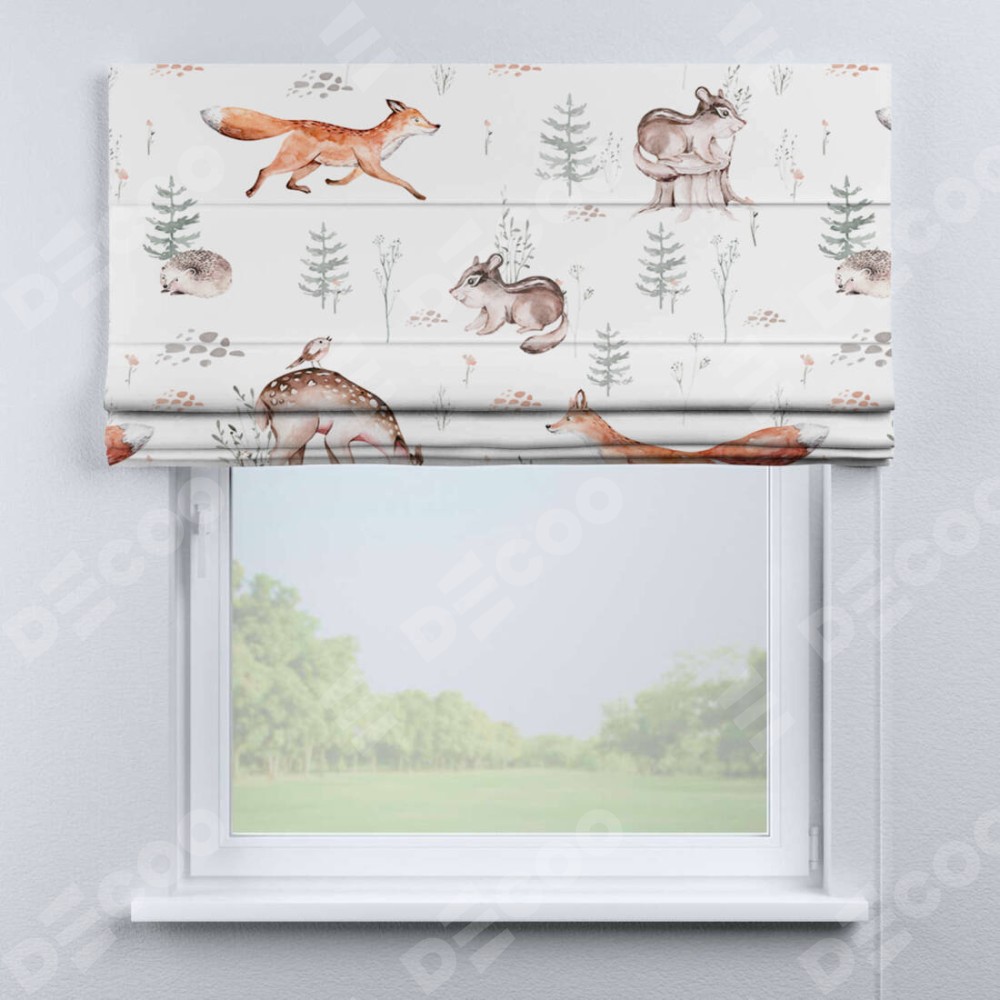 Римская штора производителя «Cortin», используется для проёма, пошита из ткани блэкаут с нанесением сублимационной печати «Пушистый питомник». Имеет универсальный механизм и подходит для монтажа: на потолок, на стену и в нишу.