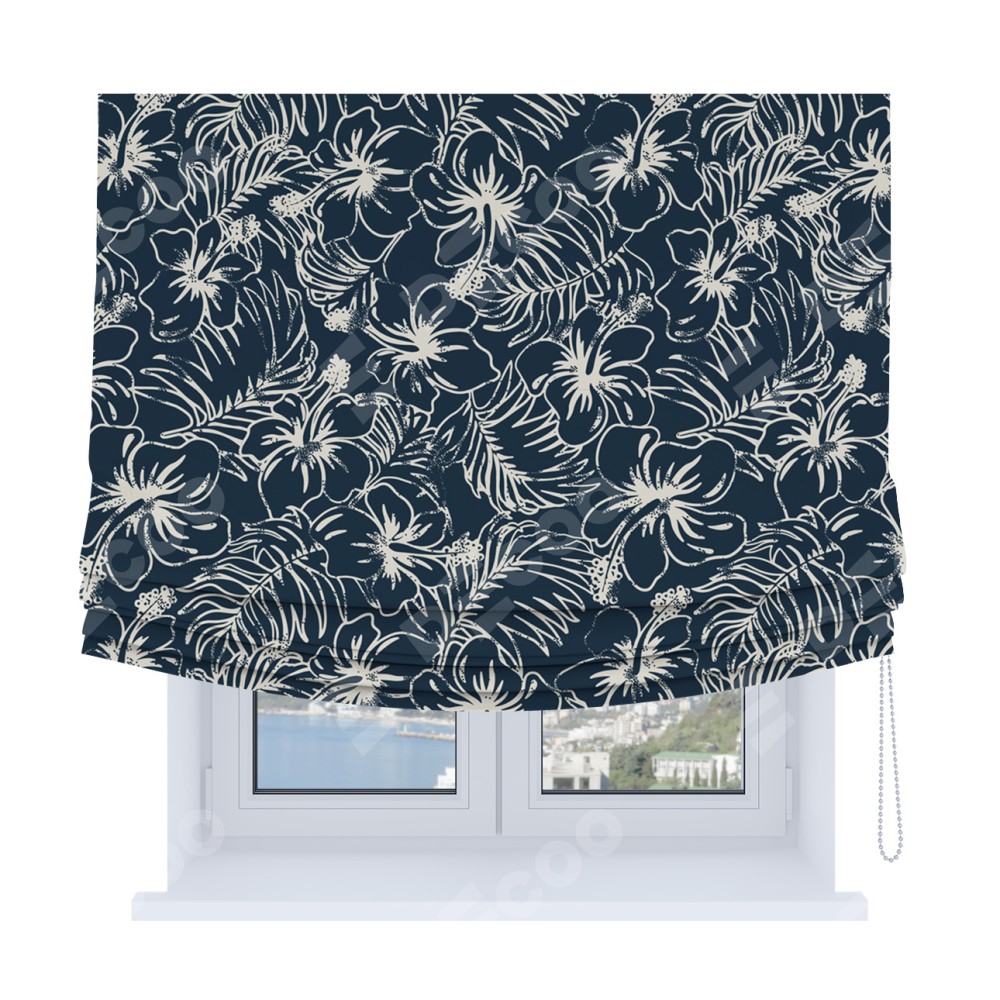 Цвет материала: В цветочек, Синий, С принтом, С рисунком, Тёмные