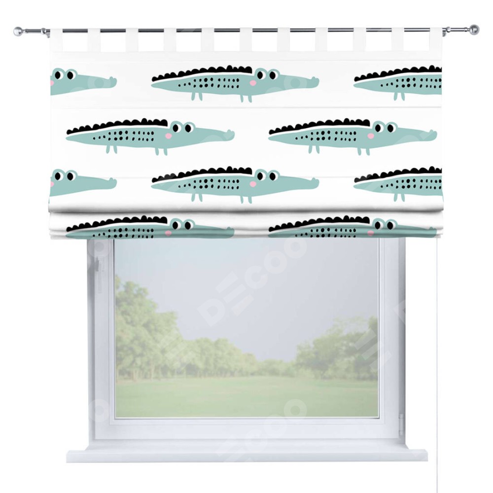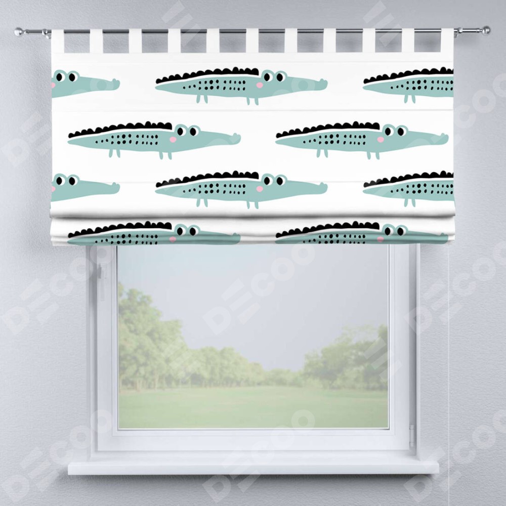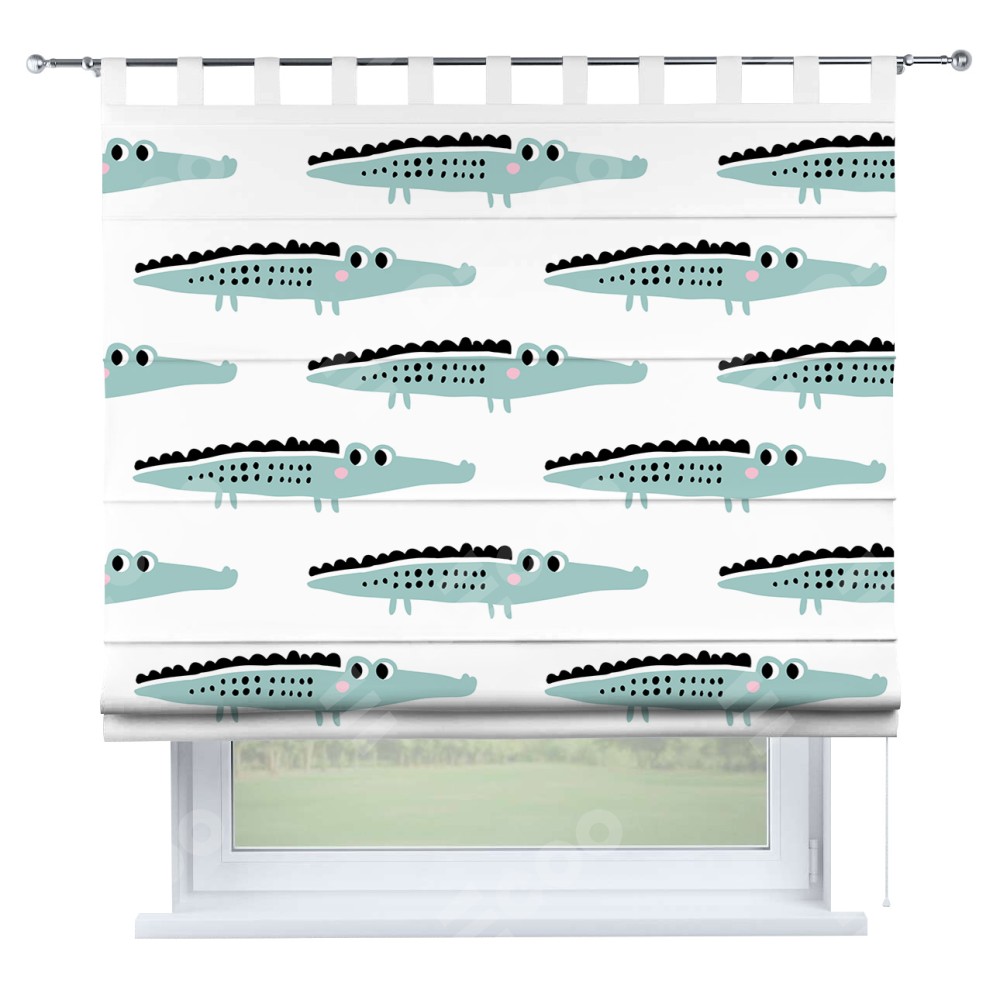Римская штора производителя «Cortin», используется для проёма, пошита из ткани блэкаут с нанесением сублимационной печати «Мистер Крок». Данная модель пошита на петлях, комплектуется на выбор круглым карнизом и подходит для монтажа на стену. Римская штора на петлях имеет простую систему регулировки высоты, отличительным преимуществом данной модели является простой способ монтажа. Достаточно повесить ее на трубу и штора готова!