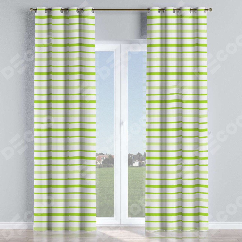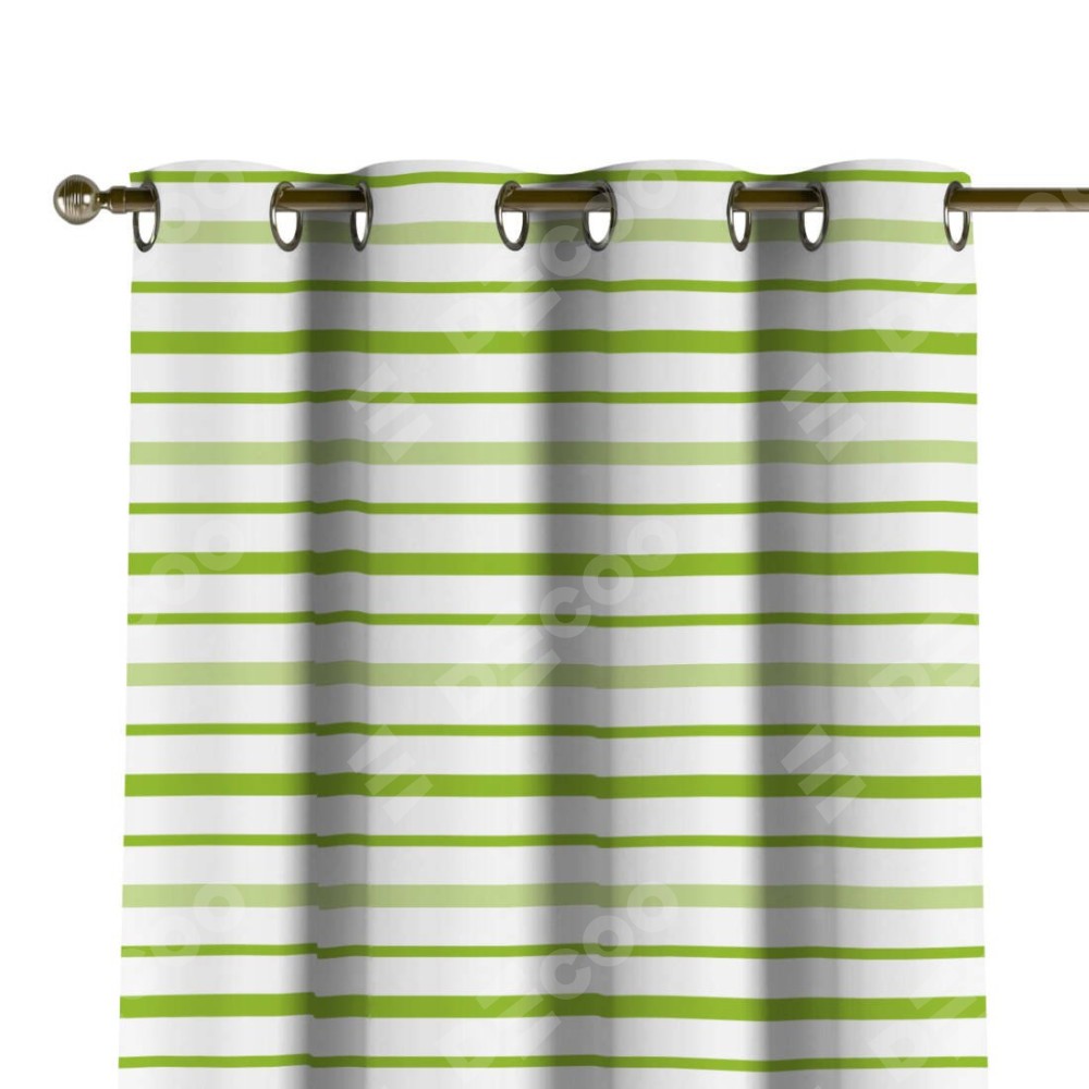 Комплект прямых штор, от производителя «Cortin», пошиты из ткани блэкаут с нанесением сублимационной печати «Зелёные горизонтальные полоски». Данная модель пошита на люверсах, комплектуется на выбор круглым карнизом и подходит для монтажа на стену или потолок. Прямые шторы на люверсах шьются по стандарту с коэффициентом 1/2 (на 100 см. ширины проёма 200 см. ширины ткани), отличительным преимуществом данной модели является простой способ монтажа. Достаточно повесить ее на трубу и штора готова!