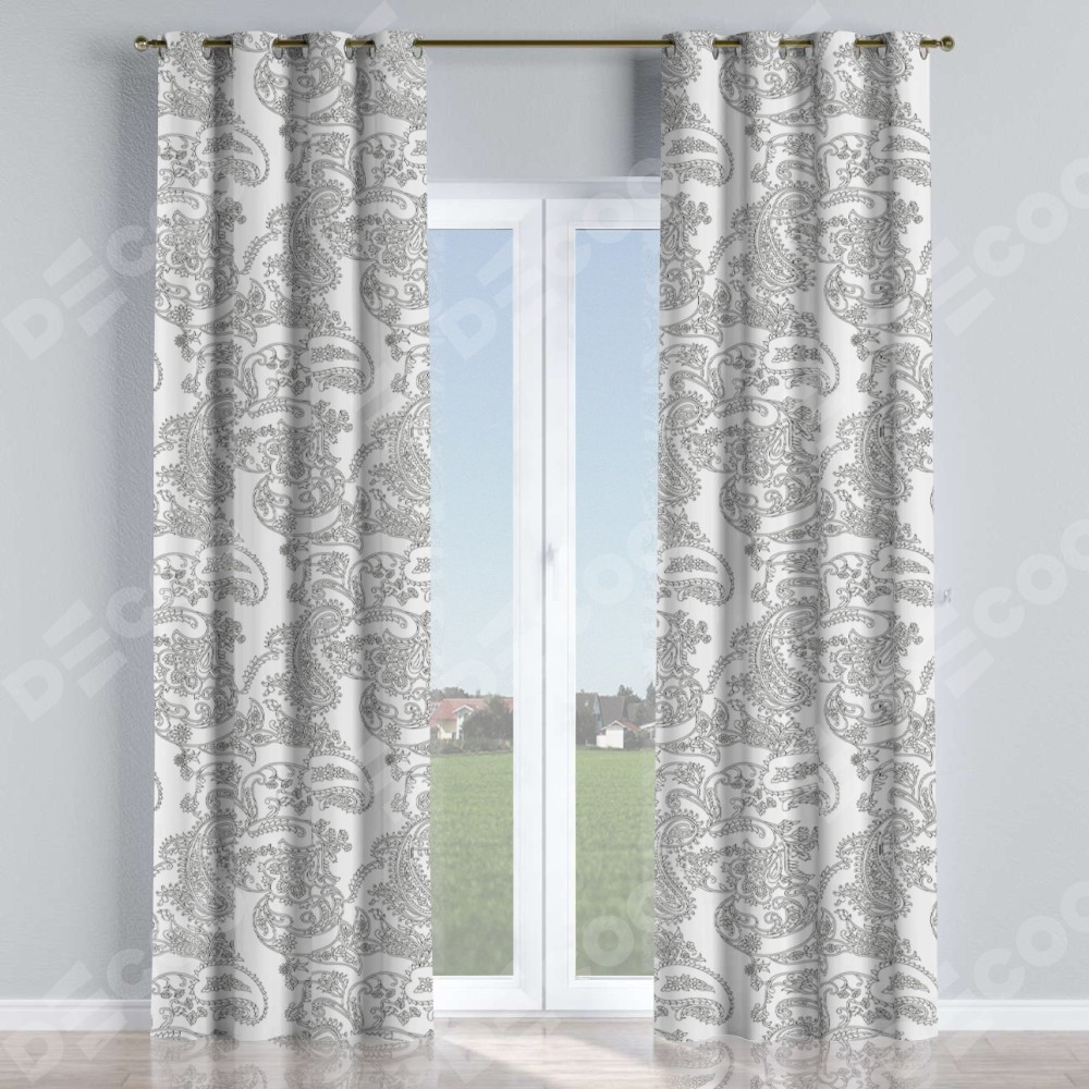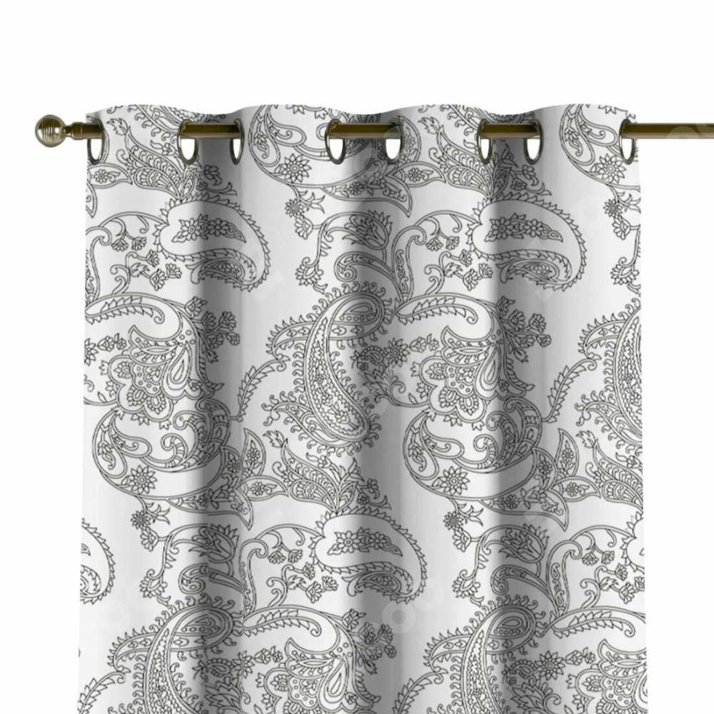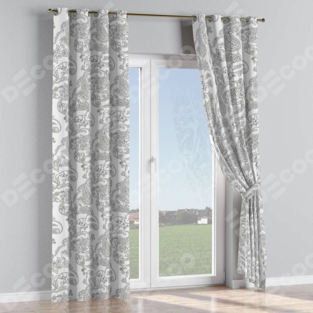 Комплект прямых штор, от производителя «Cortin», пошиты из ткани блэкаут с нанесением сублимационной печати «Светлый пейсли». Данная модель пошита на люверсах, комплектуется на выбор круглым карнизом и подходит для монтажа на стену или потолок. Прямые шторы на люверсах шьются по стандарту с коэффициентом 1/2 (на 100 см. ширины проёма 200 см. ширины ткани), отличительным преимуществом данной модели является простой способ монтажа. Достаточно повесить ее на трубу и штора готова!