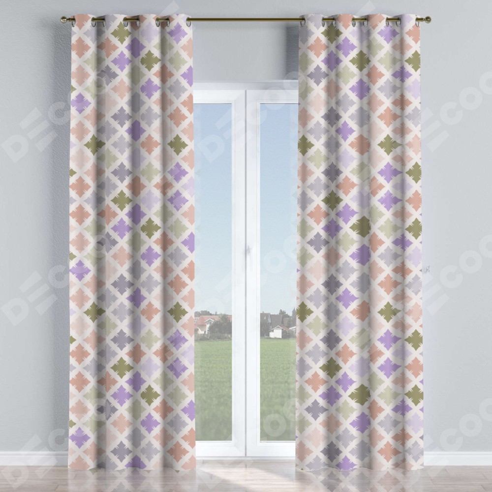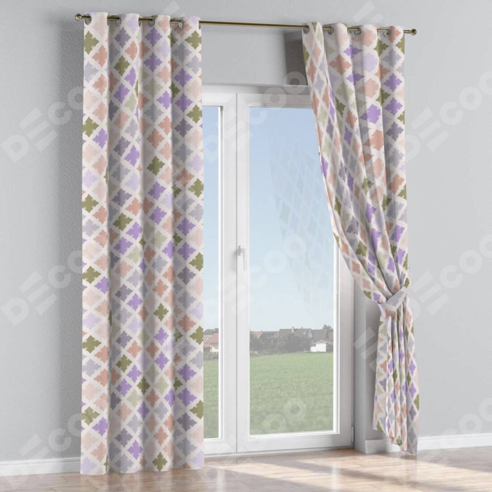 Комплект прямых штор, от производителя «Cortin», пошиты из ткани блэкаут с нанесением сублимационной печати «Фигурные плитки». Данная модель пошита на люверсах, комплектуется на выбор круглым карнизом и подходит для монтажа на стену или потолок. Прямые шторы на люверсах шьются по стандарту с коэффициентом 1/2 (на 100 см. ширины проёма 200 см. ширины ткани), отличительным преимуществом данной модели является простой способ монтажа. Достаточно повесить ее на трубу и штора готова!