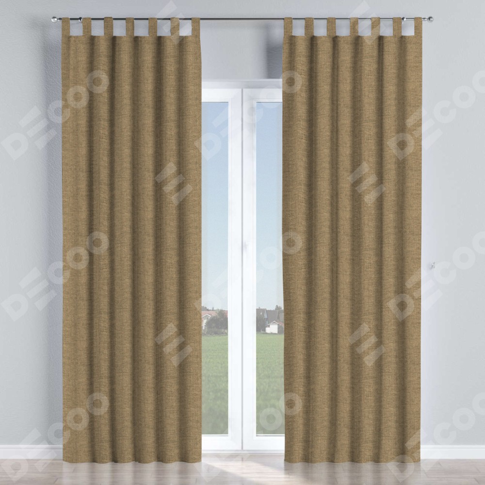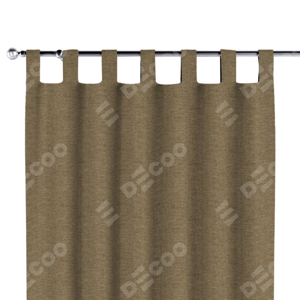 Комплект прямых штор, от производителя «Cortin», пошиты из ткани стиф димаут тёмно-бежевый, артикул ткани 18085. Данная модель пошита на петлях, комплектуется на выбор круглым карнизом и подходит для монтажа на стену или потолок. Прямые шторы на петлях шьются по стандарту с коэффициентом 1/2 (на 100 см. ширины проёма 200 см. ширины ткани), отличительным преимуществом данной модели является простой способ монтажа. Достаточно повесить ее на трубу и штора готова!