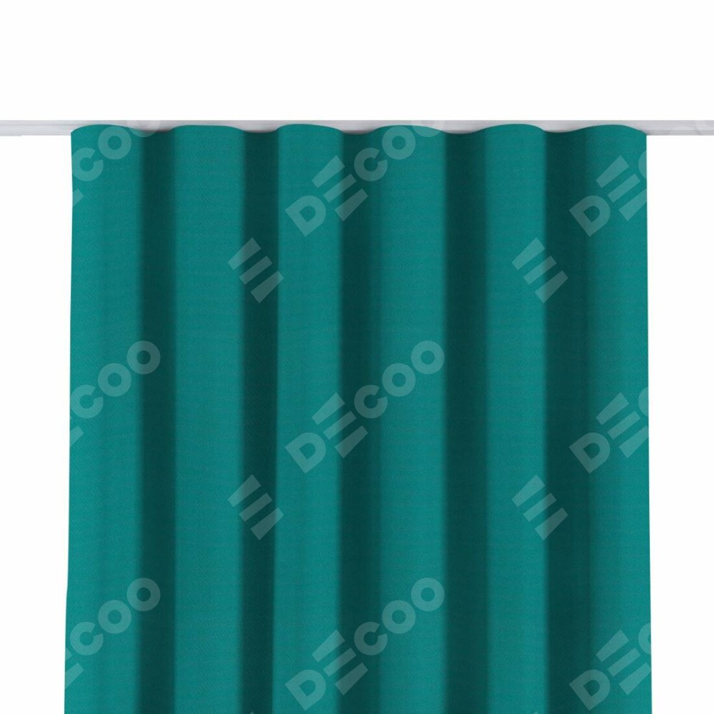 Комплект прямых штор, от производителя «Cortin», пошиты из ткани блэкаут однотонный бирюзовый, артикул ткани 88297. С изнаночной стороны в верхней части штор пристрачивается шторная лента с декоративными складками «Волна». Для создания элегантных складок прямые шторы шьются по стандарту с коэффициентом 1:2 (на 100 см. ширины проёма 200 см. ширины ткани).