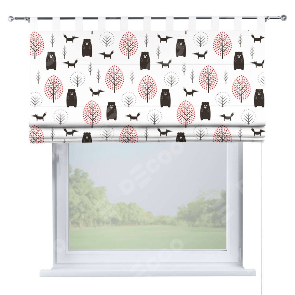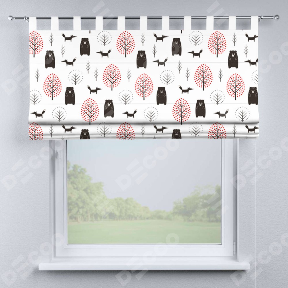 Римская штора производителя «Cortin», используется для проёма, пошита из ткани блэкаут с нанесением сублимационной печати «Сканди лес». Данная модель пошита на петлях, комплектуется на выбор круглым карнизом и подходит для монтажа на стену. Римская штора на петлях имеет простую систему регулировки высоты, отличительным преимуществом данной модели является простой способ монтажа. Достаточно повесить ее на трубу и штора готова!