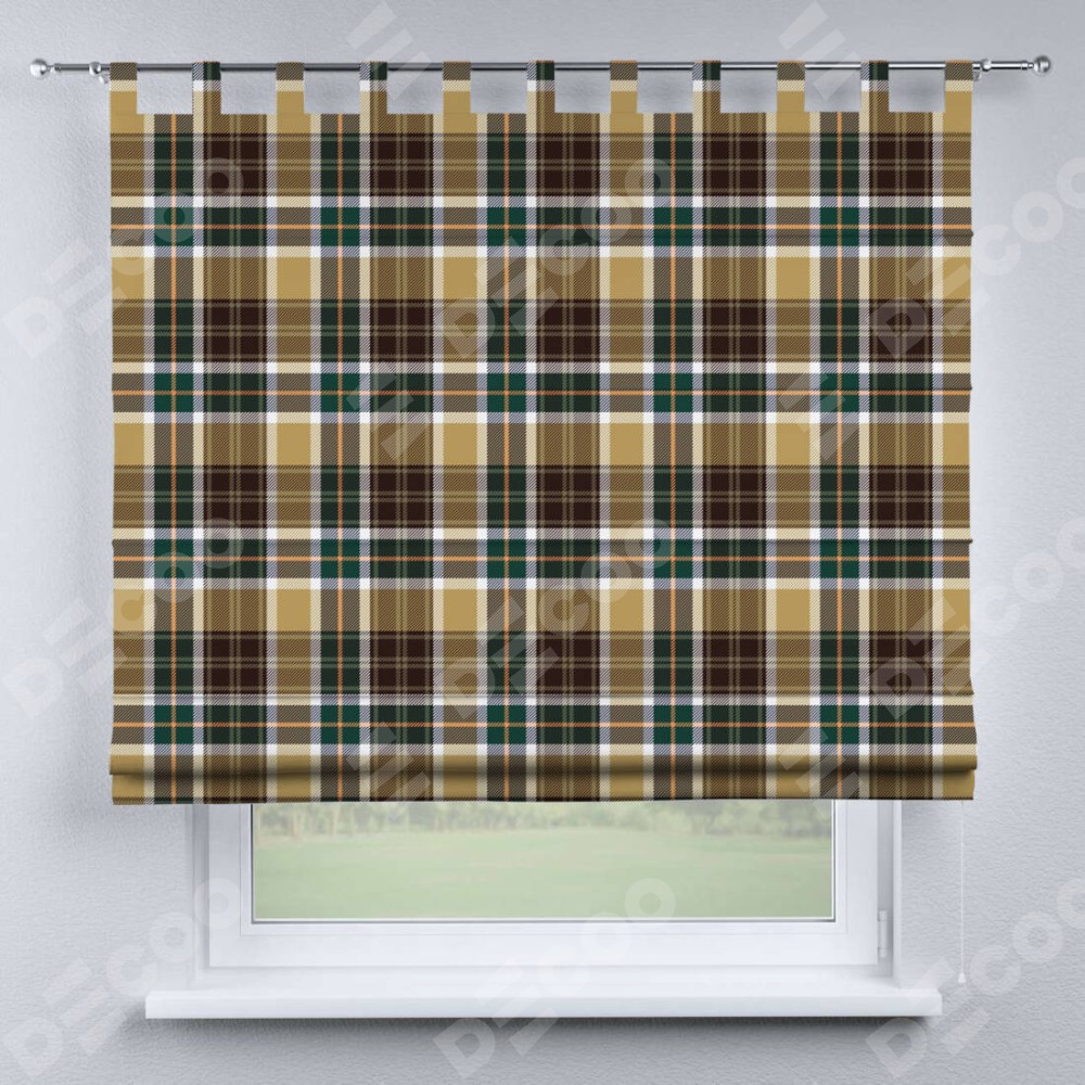 Римская штора на петлях «Бежево-зелёная клетка»