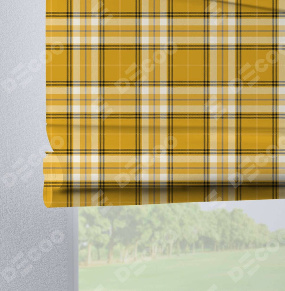 Римская штора на петлях «Желто-горчичная клетка»
