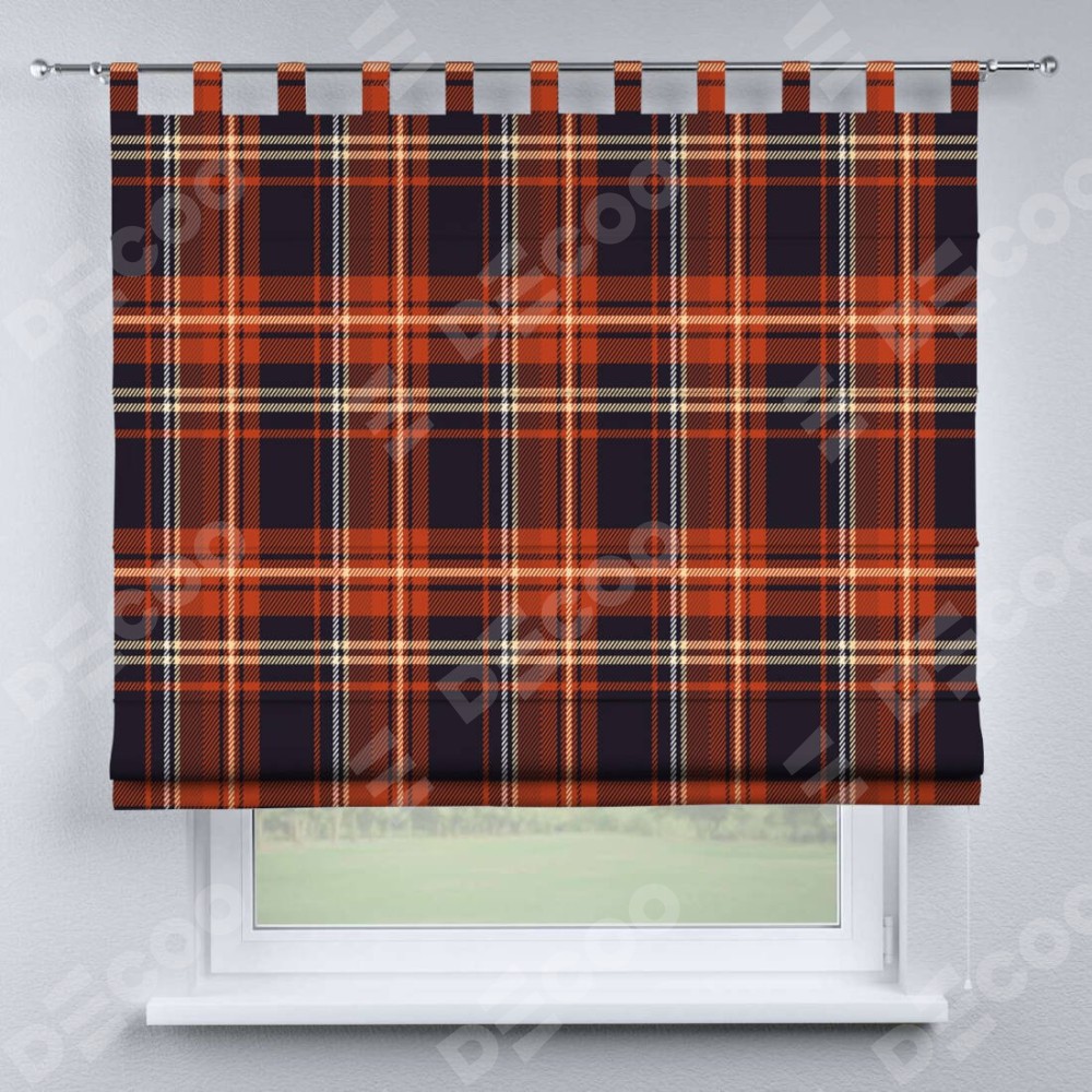 Римская штора производителя «Cortin», используется для проёма, пошита из ткани блэкаут с нанесением сублимационной печати «Сине-оранжевая клетка». Данная модель пошита на петлях, комплектуется на выбор круглым карнизом и подходит для монтажа на стену. Римская штора на петлях имеет простую систему регулировки высоты, отличительным преимуществом данной модели является простой способ монтажа. Достаточно повесить ее на трубу и штора готова!