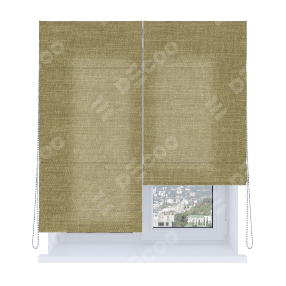 Римская штора производителя «Cortin», используется для проёма, пошита из ткани лён коричневый, артикул ткани 7443. Имеет универсальный механизм и подходит для монтажа: на потолок, на стену и в нишу. Удобное управление каждой шторой отдельно.