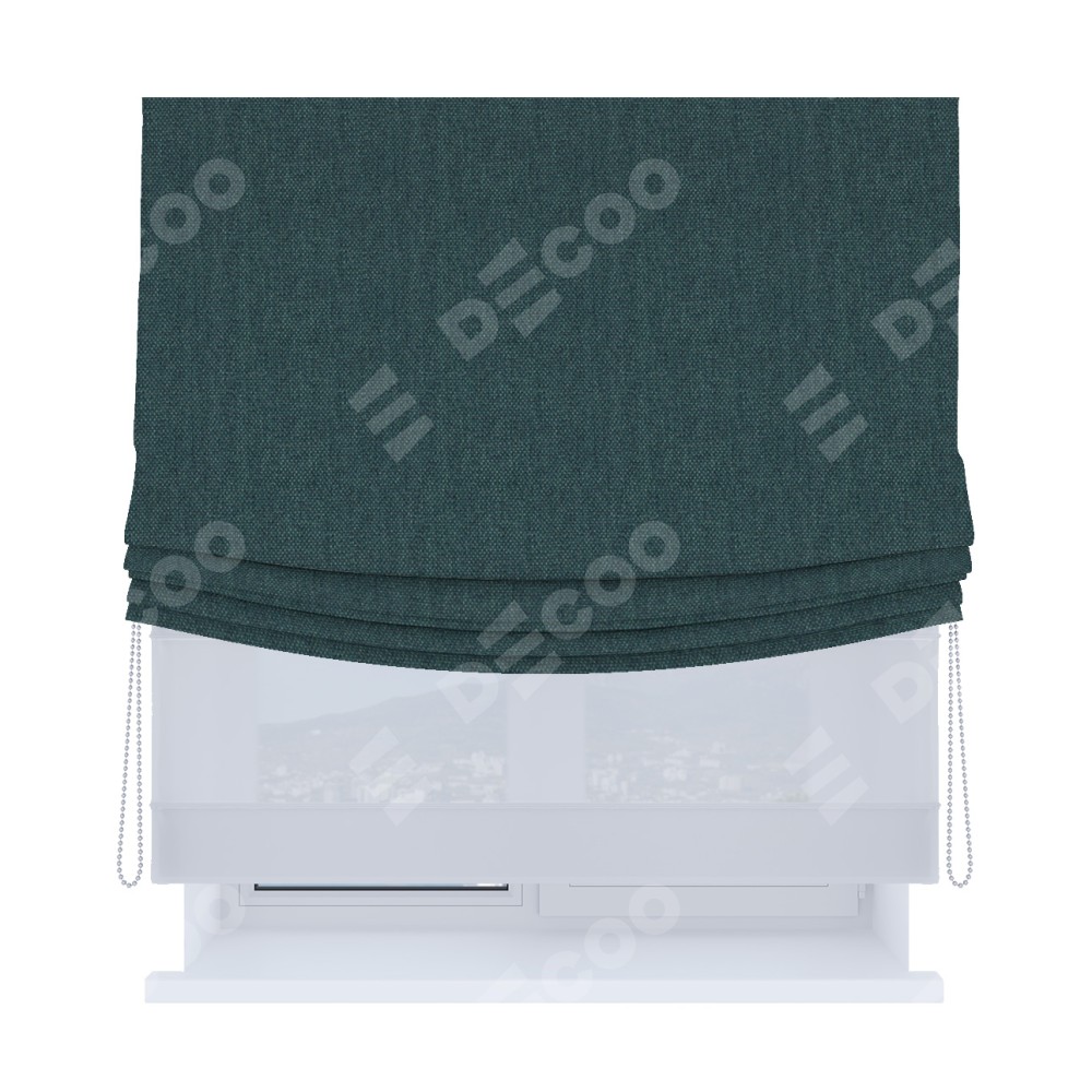 Римская штора день-ночь производителя «Cortin», используется для проёма, пошита из двух полотен, с лицевой стороны лён димаут серо-синий артикул 03238, вторая ткань тюль (по стандарту комплектуется тюль белого цвета артикул V-01). Имеет универсальный механизм и подходит для монтажа: на потолок, на стену и в нишу. Удобное управление каждой шторой отдельно.