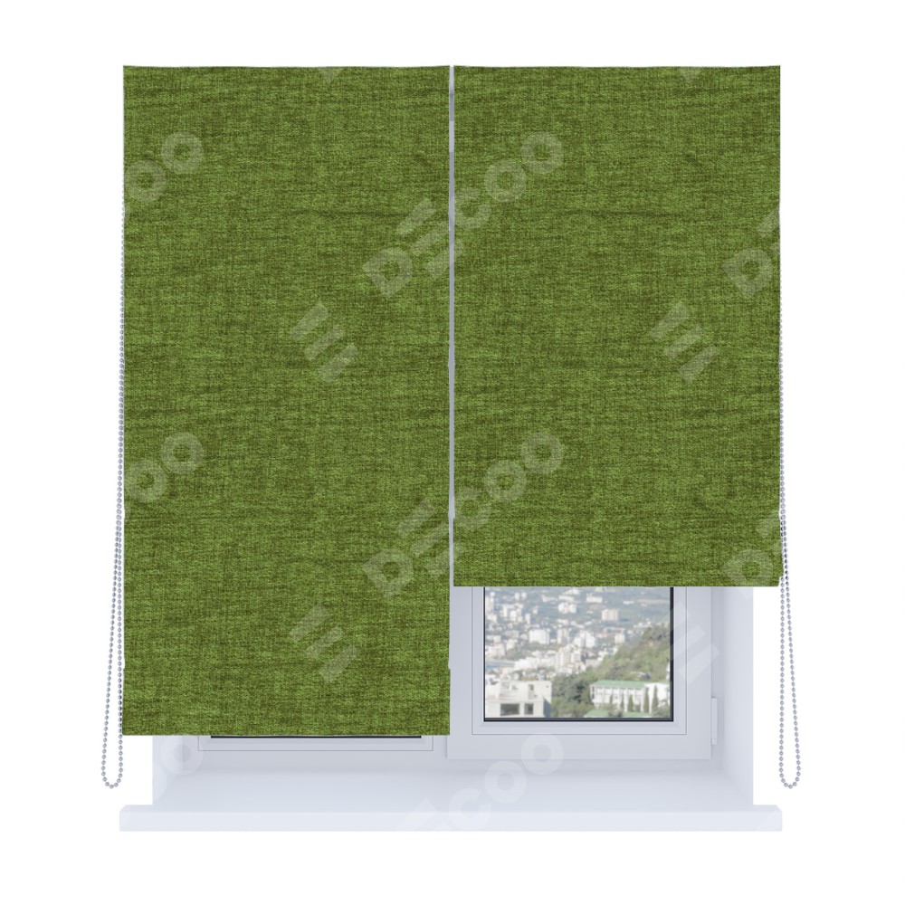 Римская штора «Кортин», система «Комфорт», рогожка димаут салатовый