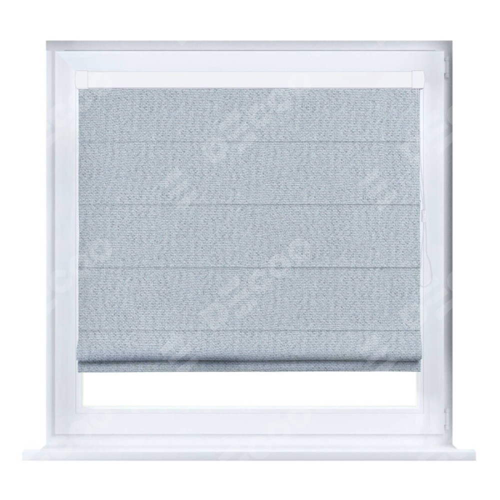 Римская штора производителя «Cortin», устанавливается на створку окна, пошита из ткани лён димаут серый, артикул F3. Штора шьётся по индивидуальным размерам, для данного типа римской шторы возможная ширина от 35 до 150 см., высота до 250 см.