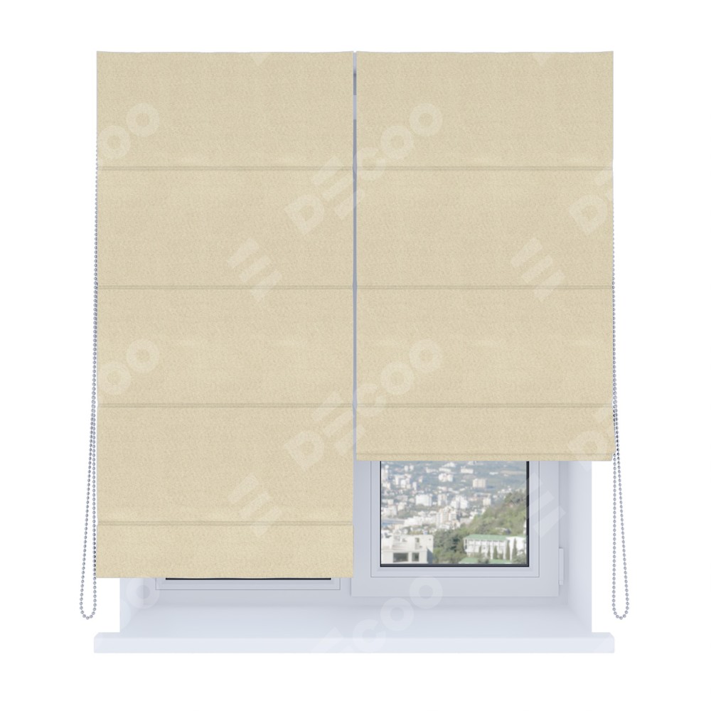 Есть модель римских штор в которой первый слой из плотной ткани, защищающий от яркого солнечного света, а втрой слой из тюля. Тюль в такой модели штор дает легкость и прозрачность помещению. А также защищает от посторонних взглядов и рассеивает не яркий свет.