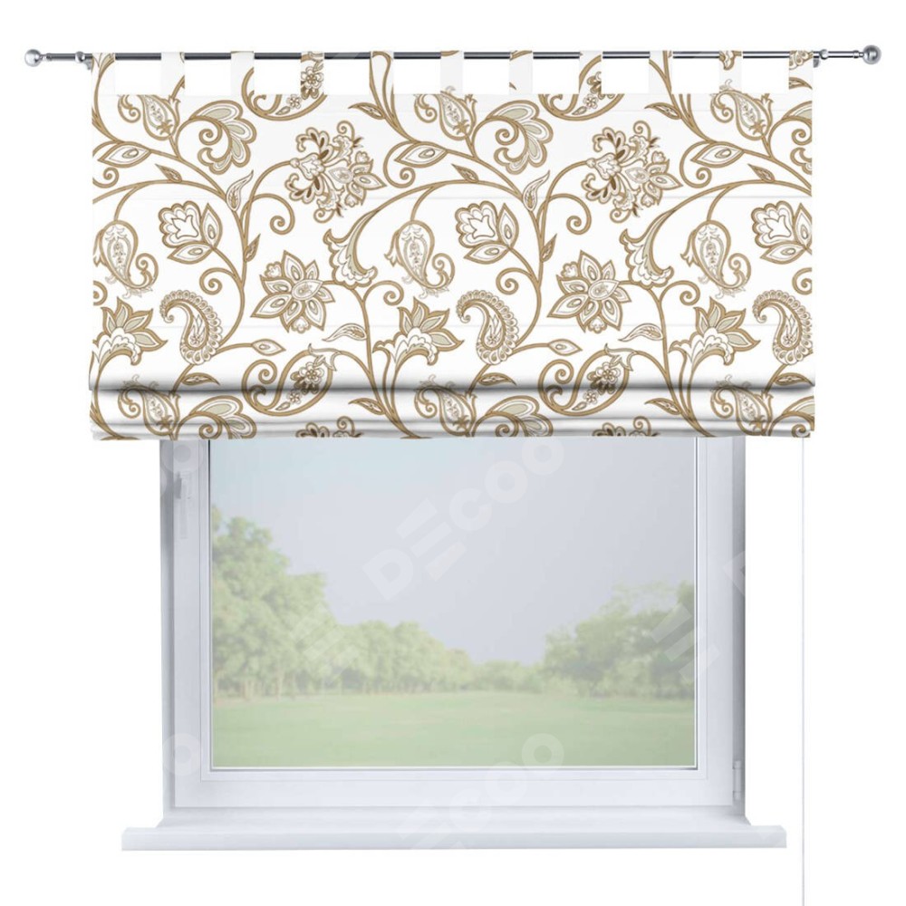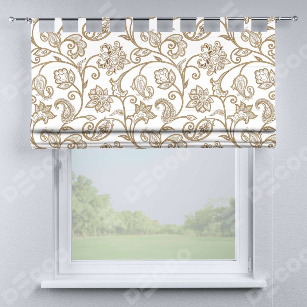Римская штора производителя «Cortin», используется для проёма, пошита из ткани блэкаут с нанесением сублимационной печати «Королевская роскошь». Данная модель пошита на петлях, комплектуется на выбор круглым карнизом и подходит для монтажа на стену. Римская штора на петлях имеет простую систему регулировки высоты, отличительным преимуществом данной модели является простой способ монтажа. Достаточно повесить ее на трубу и штора готова!