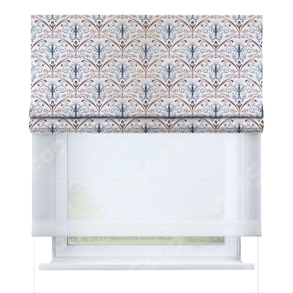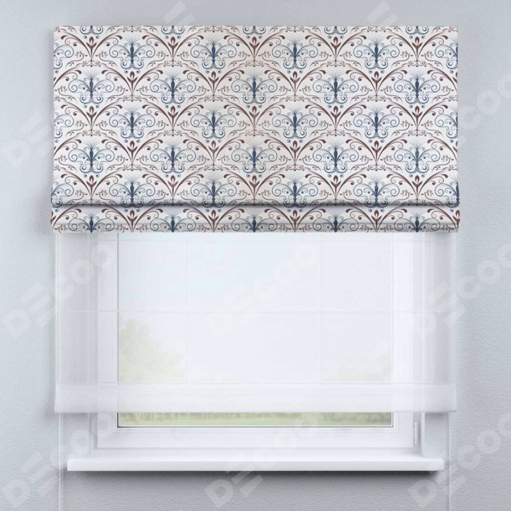 Римская штора день-ночь производителя «Cortin», используется для проёма, пошита из двух полотен, с лицевой блэкаут с нанесением сублимационной печати «Ажурные арки», вторая ткань тюль (по стандарту комплектуется тюль белого цвета артикул V-01). Имеет универсальный механизм и подходит для монтажа: на потолок, на стену и в нишу.