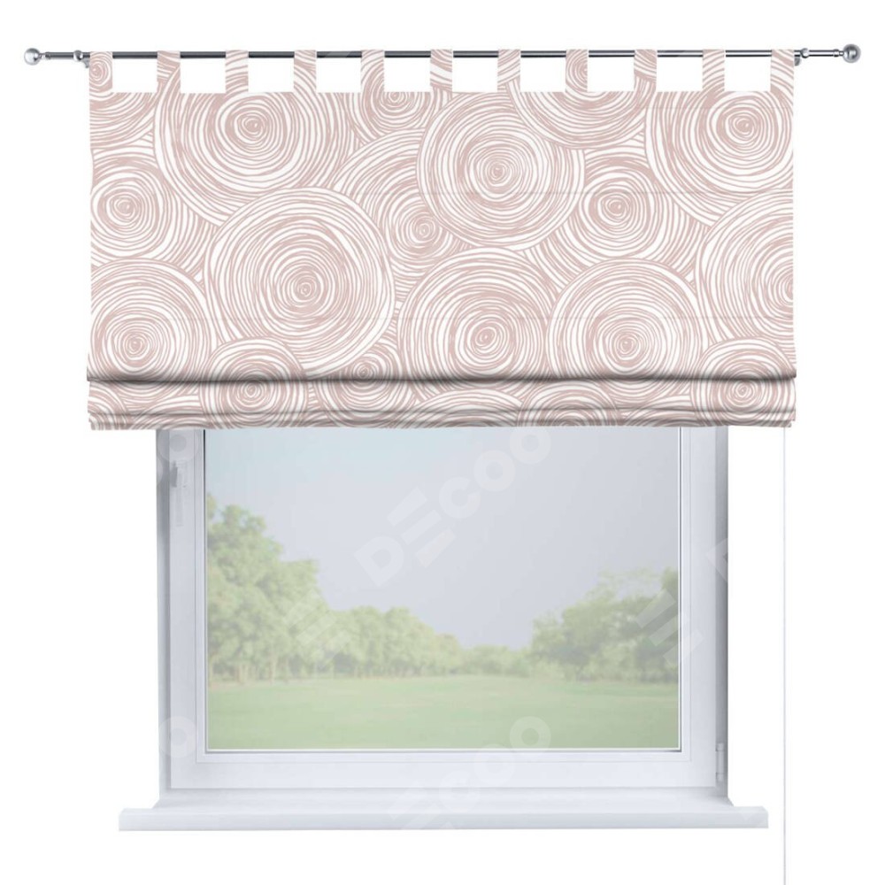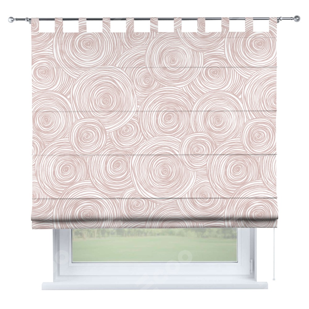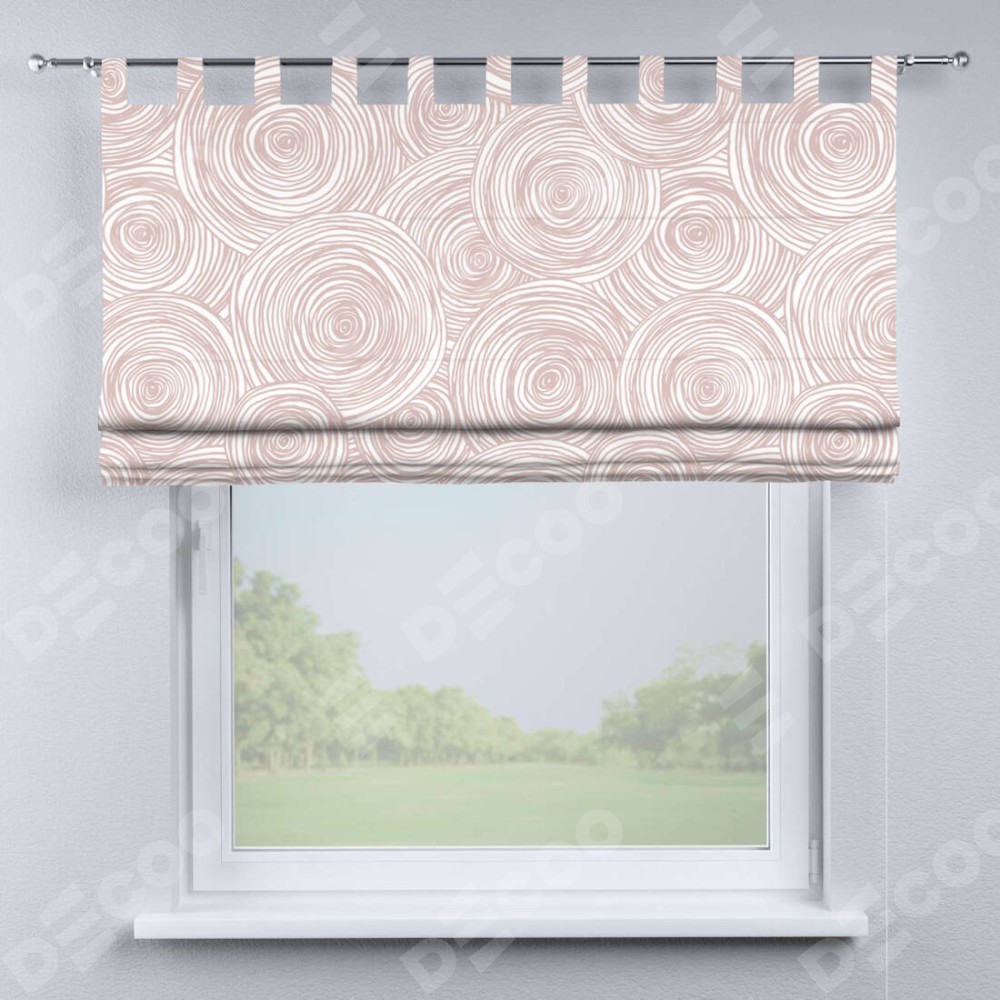 Римская штора производителя «Cortin», используется для проёма, пошита из ткани блэкаут с нанесением сублимационной печати «Бежевые круги». Данная модель пошита на петлях, комплектуется на выбор круглым карнизом и подходит для монтажа на стену. Римская штора на петлях имеет простую систему регулировки высоты, отличительным преимуществом данной модели является простой способ монтажа. Достаточно повесить ее на трубу и штора готова!