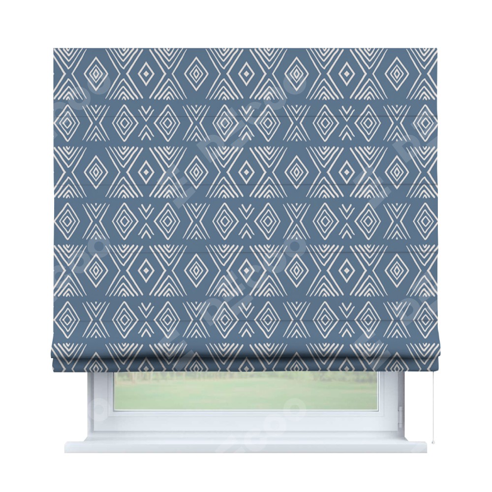 Римская штора производителя «Cortin», используется для проёма, пошита из ткани блэкаут с нанесением сублимационной печати «Графический орнамент». Имеет универсальный механизм и подходит для монтажа: на потолок, на стену и в нишу.