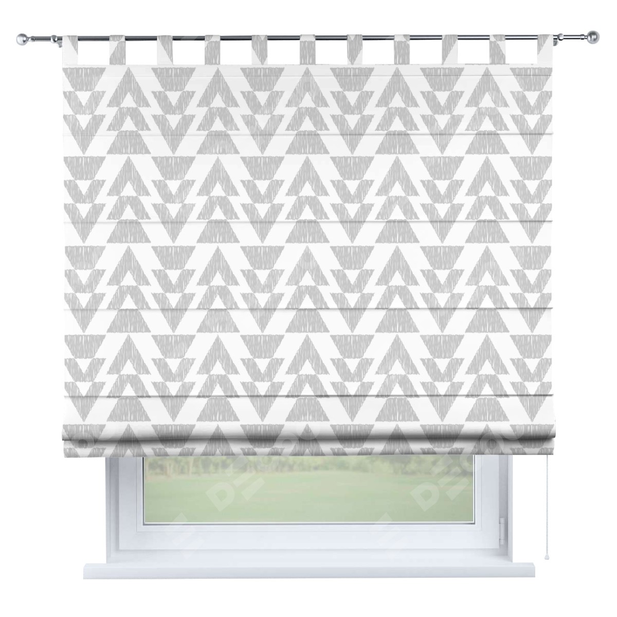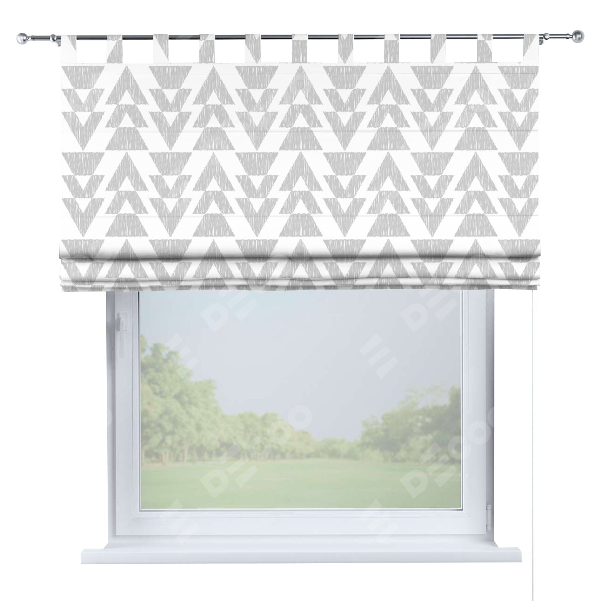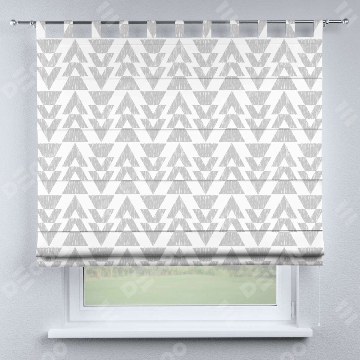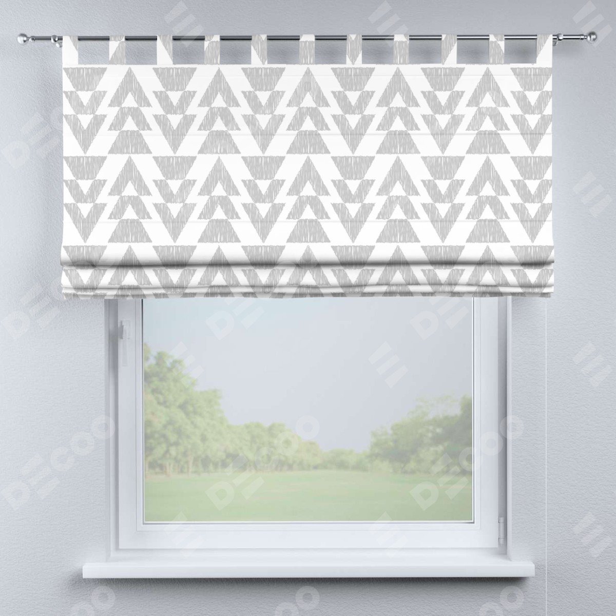Римская штора производителя «Cortin», используется для проёма, пошита из ткани блэкаут с нанесением сублимационной печати «Серые стрелки». Данная модель пошита на петлях, комплектуется на выбор круглым карнизом и подходит для монтажа на стену. Римская штора на петлях имеет простую систему регулировки высоты, отличительным преимуществом данной модели является простой способ монтажа. Достаточно повесить ее на трубу и штора готова!