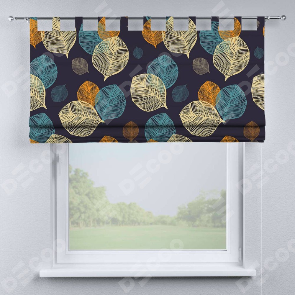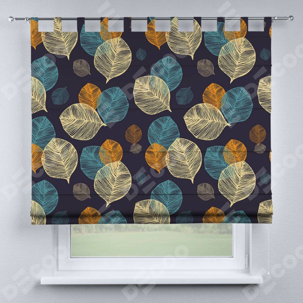 Римская штора производителя «Cortin», используется для проёма, пошита из ткани блэкаут с нанесением сублимационной печати «Листья в ночи». Данная модель пошита на петлях, комплектуется на выбор круглым карнизом и подходит для монтажа на стену. Римская штора на петлях имеет простую систему регулировки высоты, отличительным преимуществом данной модели является простой способ монтажа. Достаточно повесить ее на трубу и штора готова!