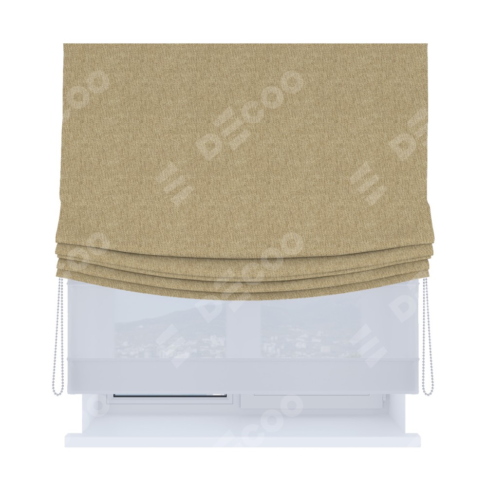 Римская штора день-ночь производителя «Cortin», используется для проёма, пошита из двух полотен, с лицевой стороны стиф димаут бежевый артикул 18083, вторая ткань тюль (по стандарту комплектуется тюль белого цвета артикул V-01). Имеет универсальный механизм и подходит для монтажа: на потолок, на стену и в нишу. Удобное управление каждой шторой отдельно.