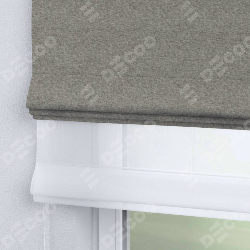 Римская штора день-ночь производителя «Cortin», используется для проёма, пошита из двух полотен, с лицевой стороны стиф димаут серо-коричневый артикул 44028, вторая ткань тюль (по стандарту комплектуется тюль белого цвета артикул V-01). Имеет универсальный механизм и подходит для монтажа: на потолок, на стену и в нишу.
